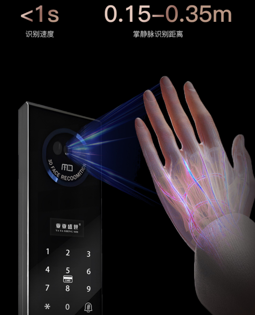 掌静脉识别(进阶之选):如果您追求更高的安全级别,可以关注配备掌静脉识别的智能锁。该技术通过识别手掌皮下静脉血管的分布特征进行验证,具有唯一性且无法复制,是目前行业公认安全等级最高的生物识别方式。