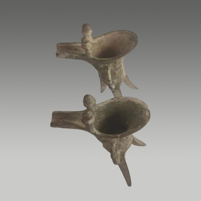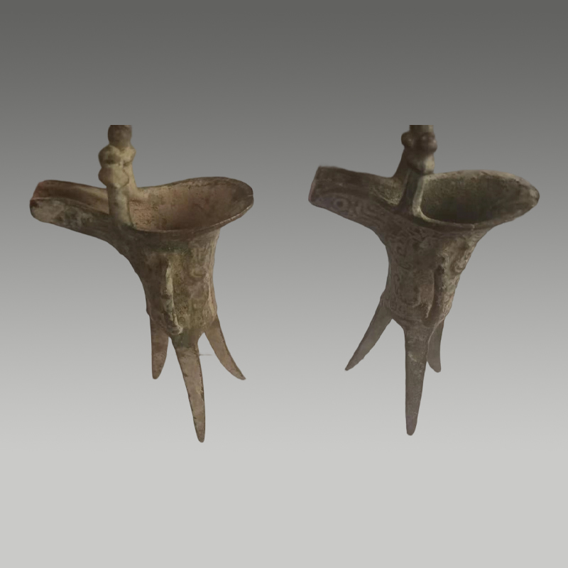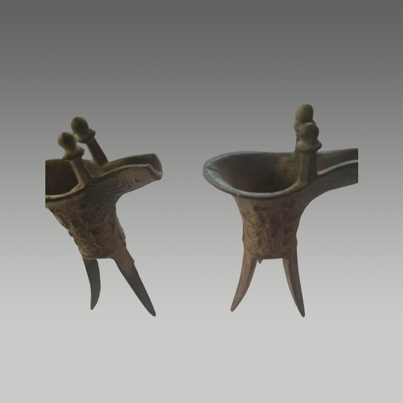 三足爵杯的风格云,雷纹,回纹等典型纹样,存世量少有珍藏价值