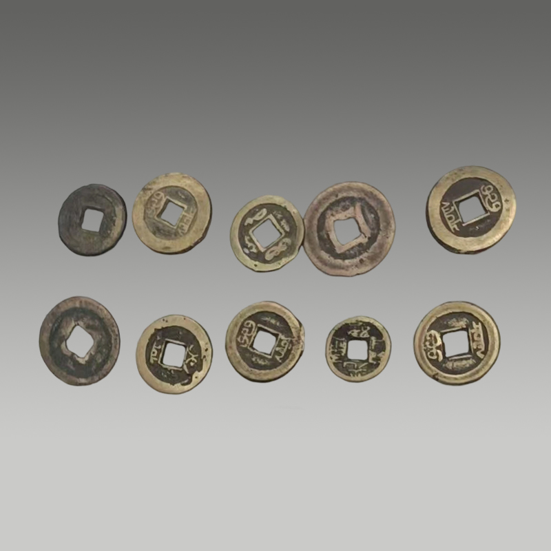这组老包浆的钱币,色泽深沉古雅,包浆醇厚内敛,展现出沉淀独特的温润质感,极具收藏价值