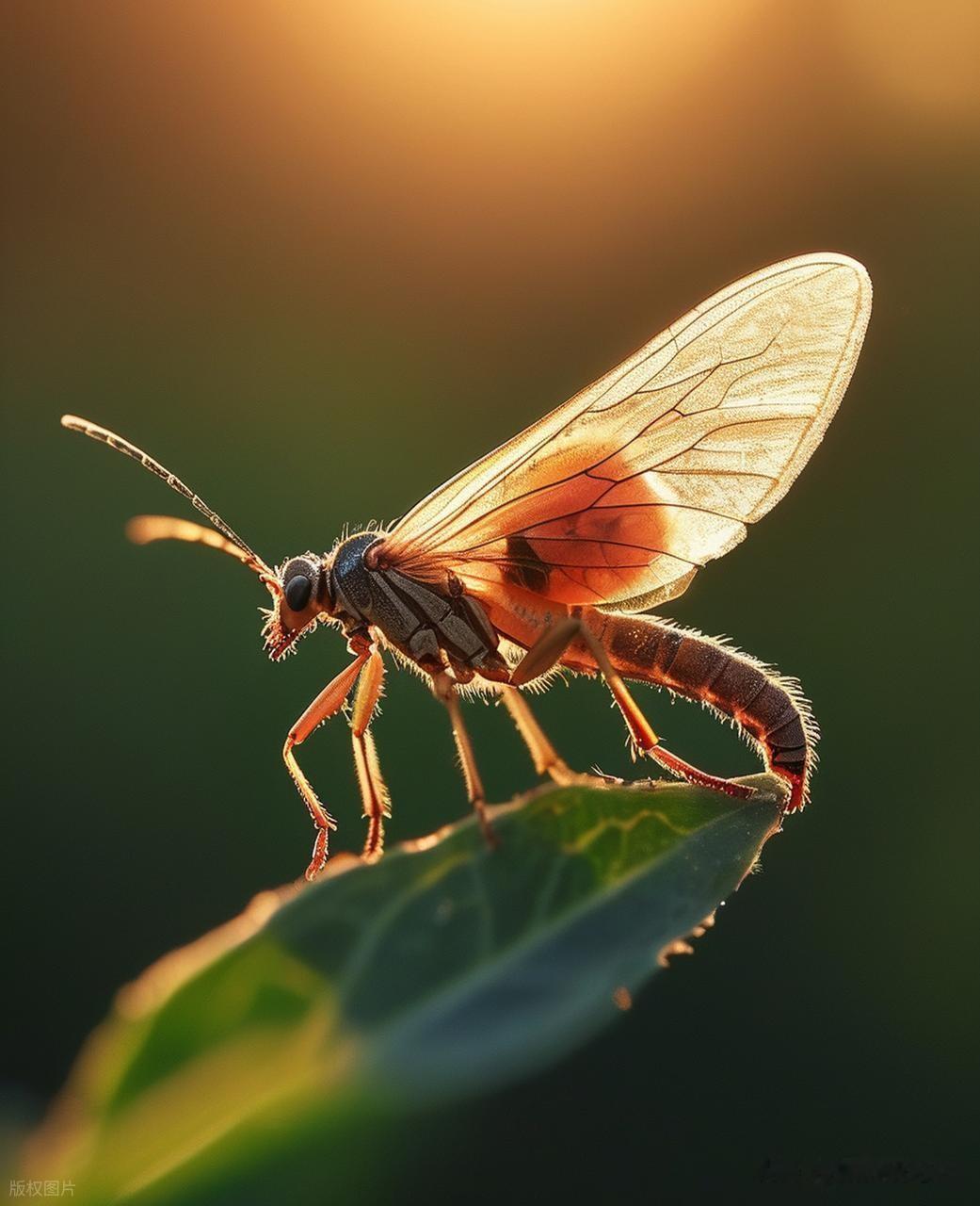 而当逆光或侧逆光登场时,情况则截然不同。光线穿透昆虫的翅膀,形成了一种半透明的光影效果,如梦如幻,仿佛为昆虫披上了一层神秘的面纱。这种独特的光影效果,不仅增强了画面的神秘感,还让昆虫在画面中脱颖而出,成为了绝对的主角。