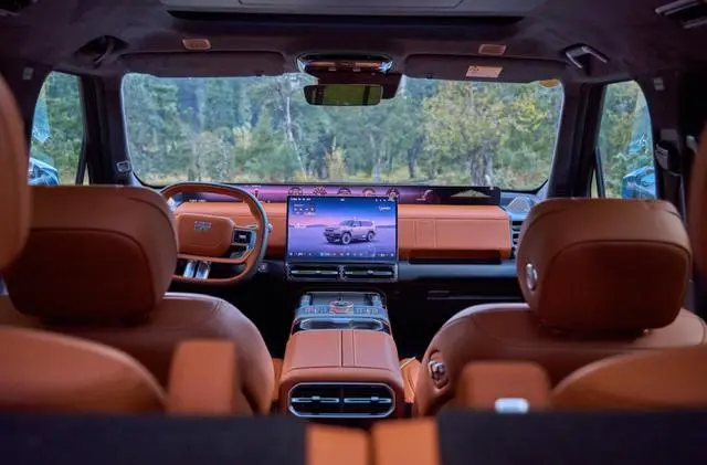 素有雪域江南的美景中,穿插着雪山、森林、湖泊、峡谷等复杂地貌。纵横 G700 鲲鹏超能混动 CDM-O 系统直面挑战,即便是海拔超 5000 米的垭口,665kW 最大功率与 1135N・m 最大扭矩,突破高原动力衰减瓶颈,加之4.6秒的零百加速度,即便是垭口爬坡也不滞涩,让超车果断利落。配合三把电控差速锁与全地形反馈系统,车轮不打滑、不陷车,稳稳征服每一段高原征途。硬派之上,G700更是在豪华舒适上贡献了高原经验值。
