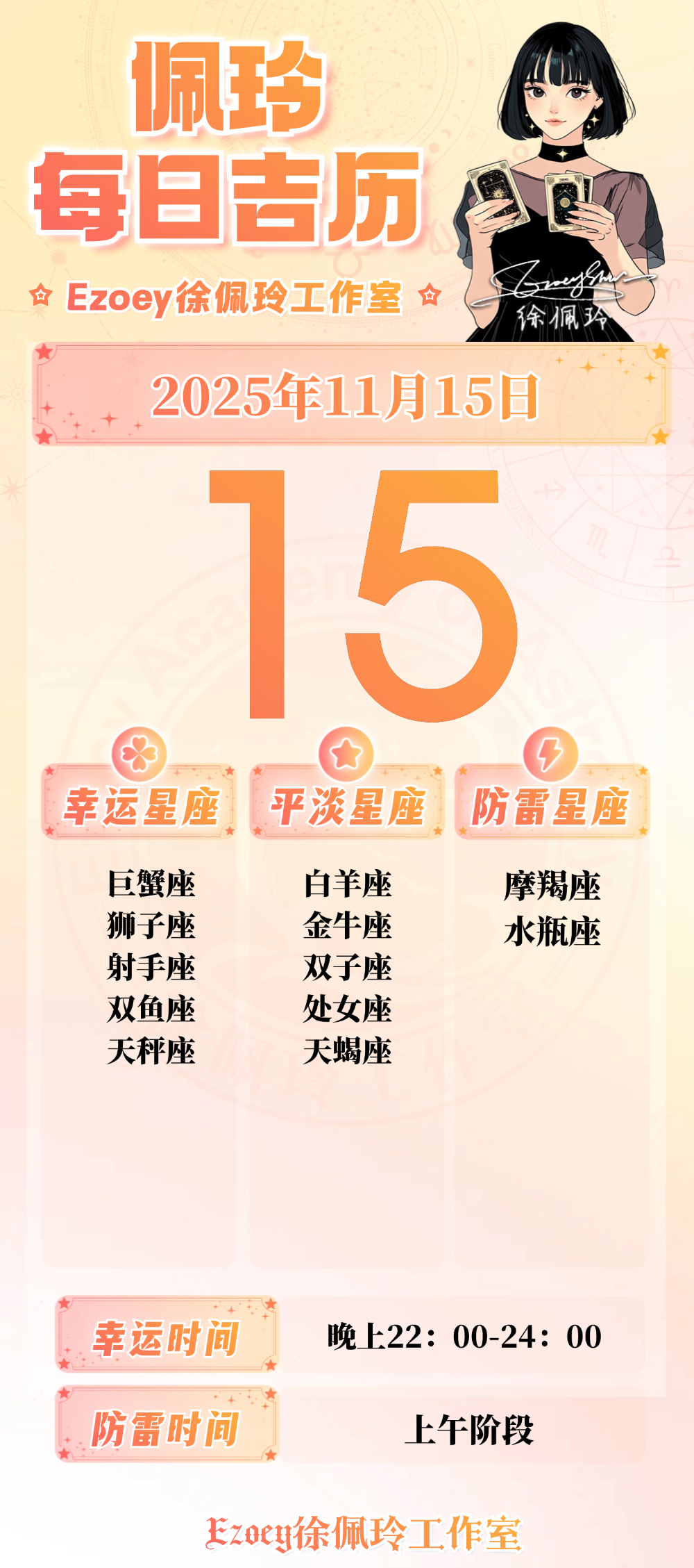 【11.15日播报】均衡发展日 幸运星座:巨蟹座、狮子座、射手座、双鱼座、天秤座——Ezoey徐佩玲25年星座播报