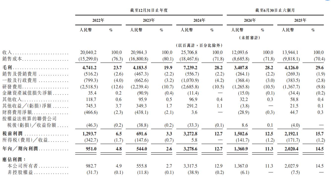 业绩方面,2023年、2024年、2025年前6个月,豪威集团营收分别为209.84亿元、257.07亿元和139.44亿元。相应的净利润分别为5.44亿元、32.79亿元和20.20亿元。