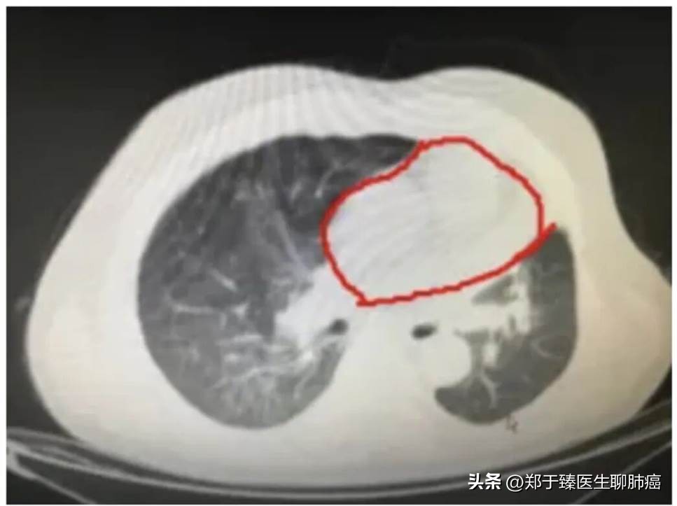 从图中可以看到,患者在手术后一年复查时,右侧肺大幅膨胀,心脏被推到左侧胸腔,体现了身体强大的代偿能力,即使切除了一整边的肺,残存的肺也能努力填满胸腔的空缺。