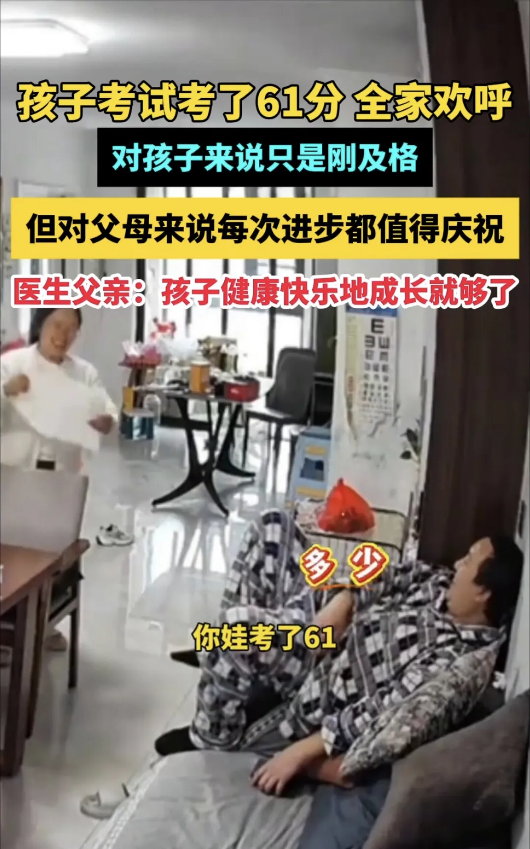 这种对自身和孩子的清醒认知,使得他能敏锐捕捉到“61分”背后的进步意义。