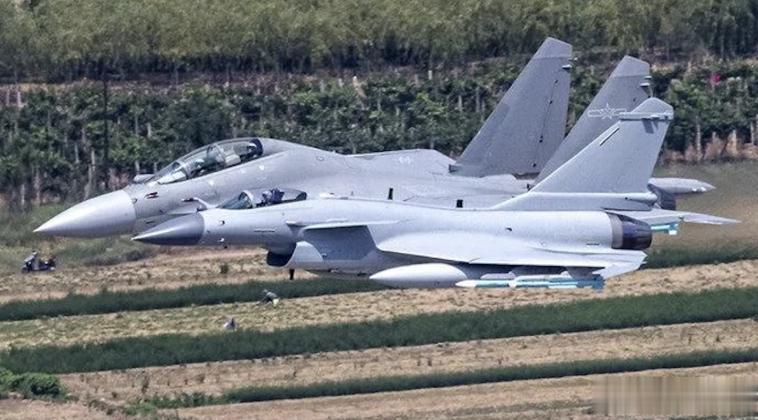 J-10C轻型战斗机(前部)和J-16重型战斗机(后部)