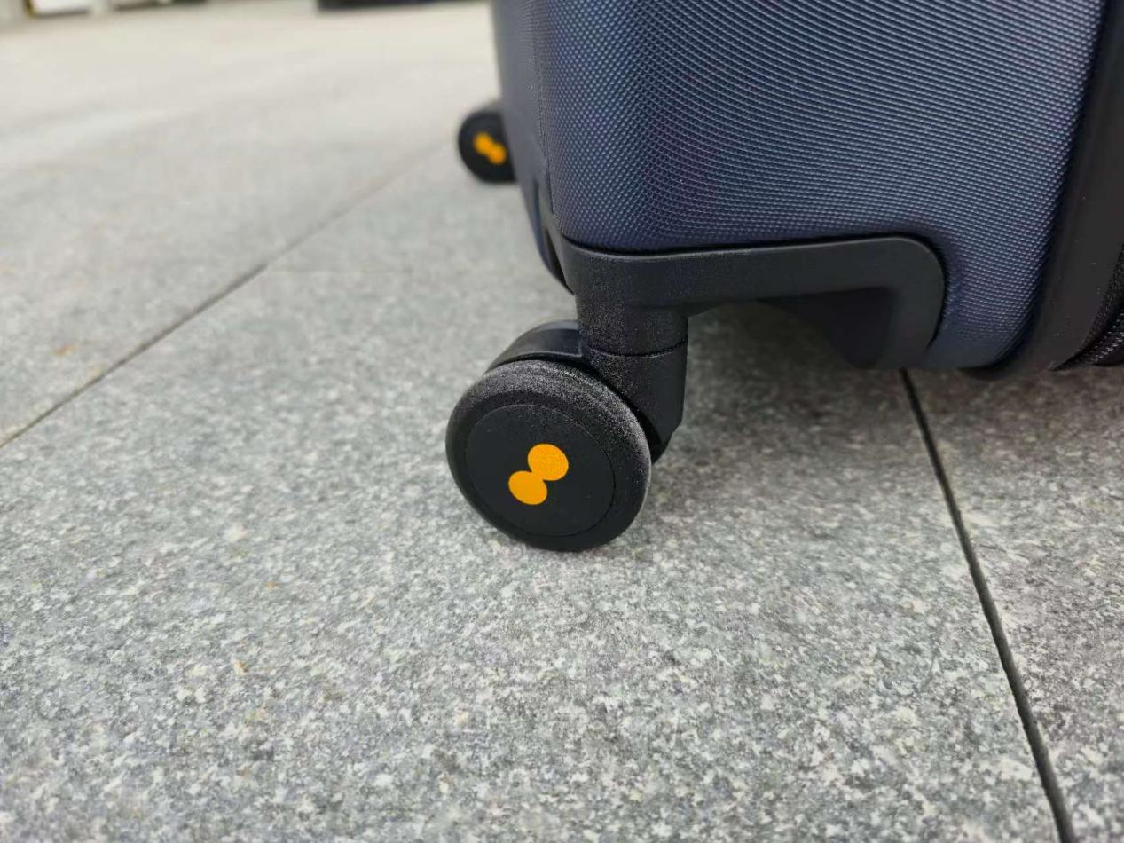 ●标志性小黄轮:轮子上印着品牌logo,辨识度极高,转动时顺滑无卡顿,用手轻轻一推就能滑行很远,完全没有普通轮子的滞涩感;