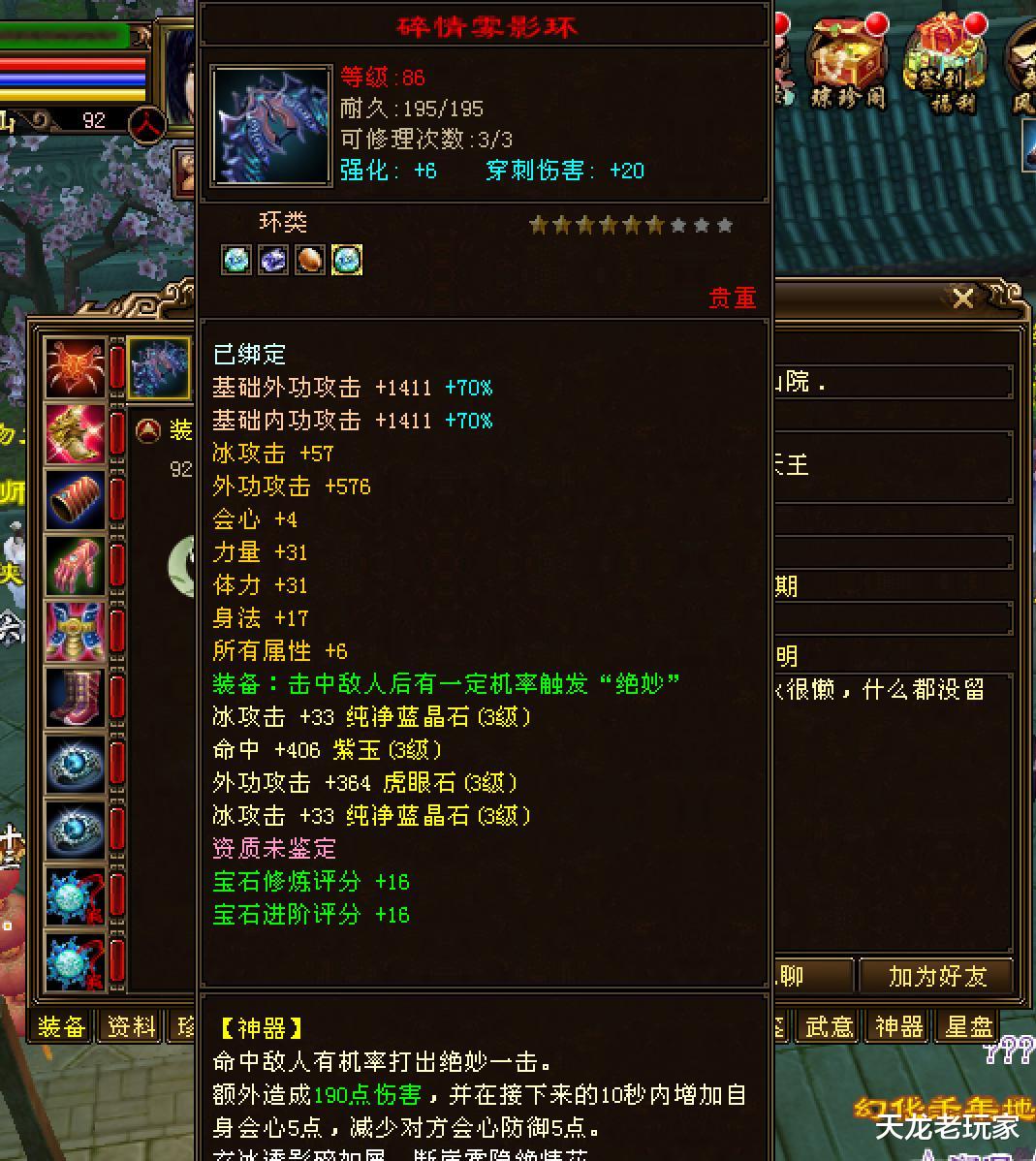 一个天山,上5级血精石和,四孔5级黄宝石?雕纹却只有可怜的体力3级!