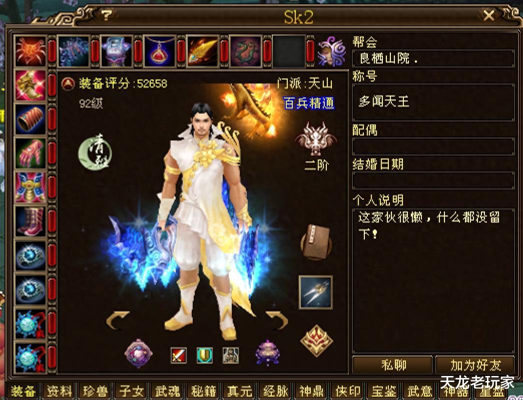 今天小编在【水晶湖】服务器偶遇了一位“蜜汁打造”的92级天山: