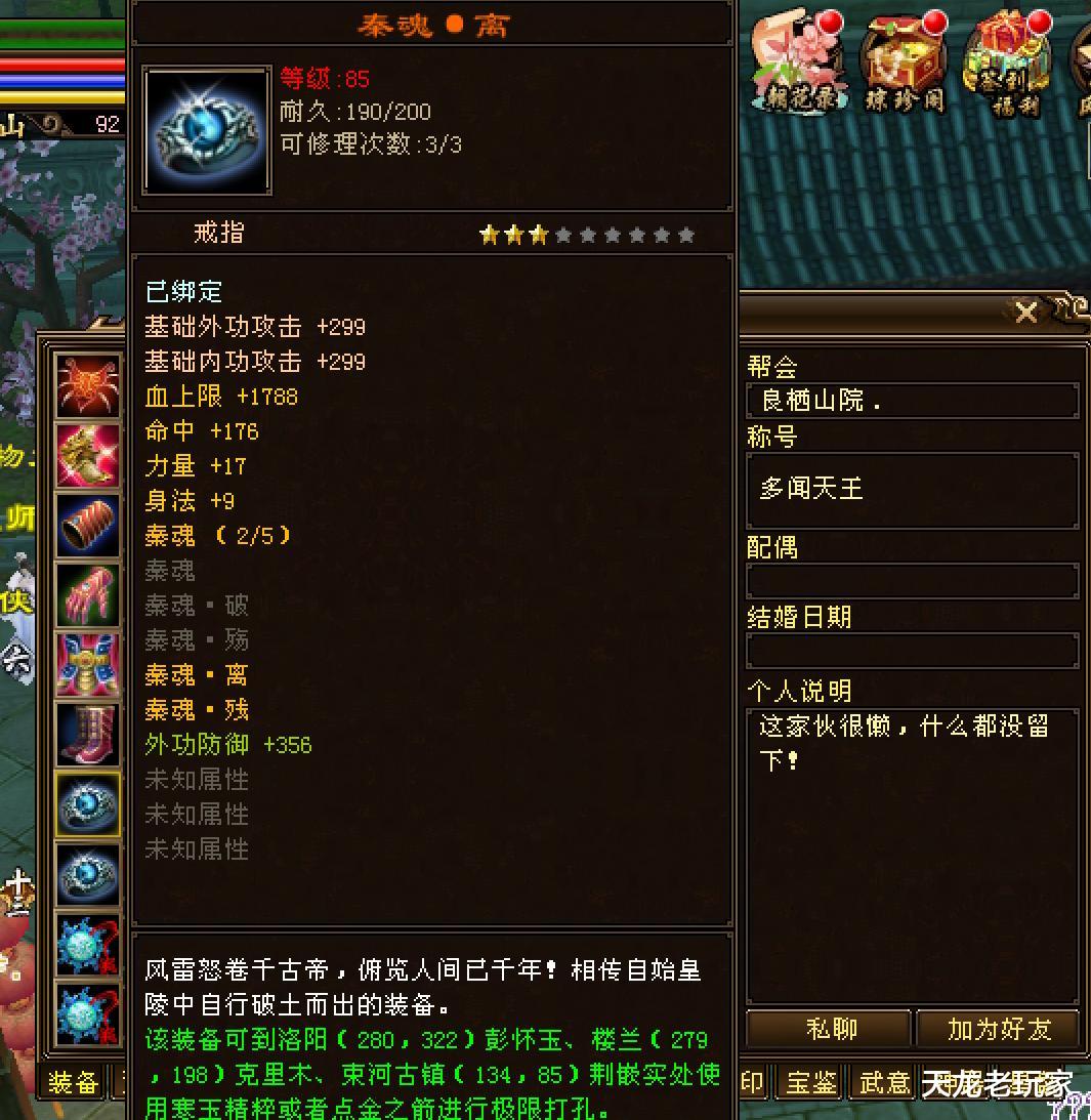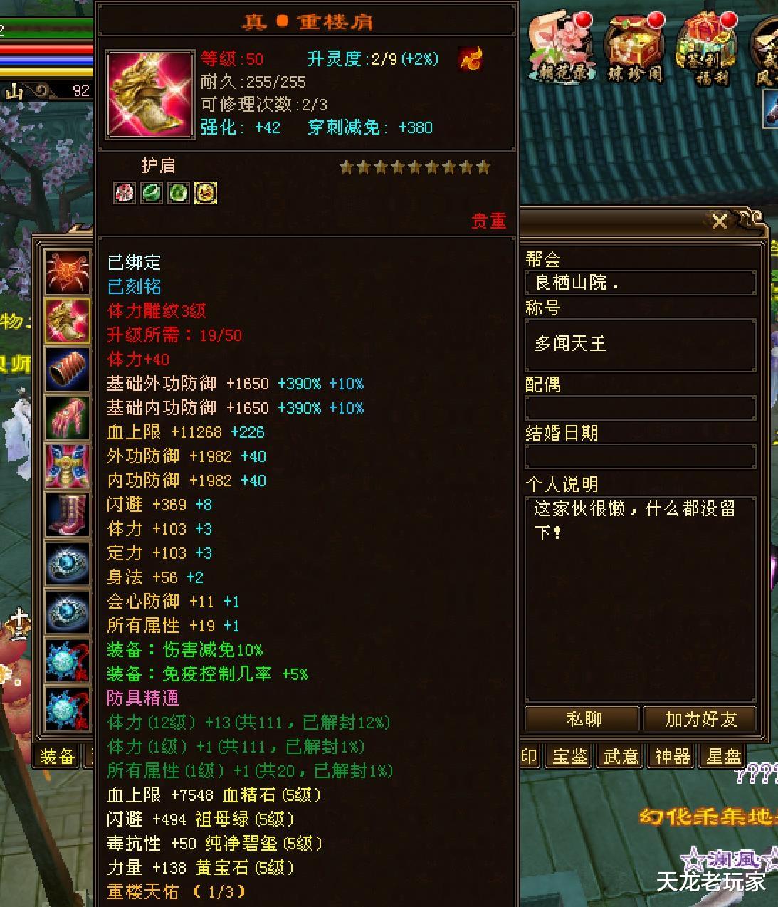 这是一个最高评分只有5万的92级天山,但是身上却有个真·重楼肩?