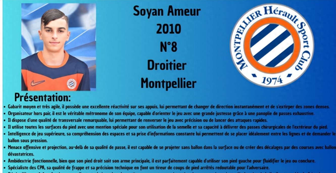 法国足球人才如雨后春笋,层出不穷。最近,在法乙联赛蒙彼利埃俱乐部,又诞生了一位天赋出众的年轻中场小妖。他就是今年只有15岁的中场新星索扬-阿莫尔。