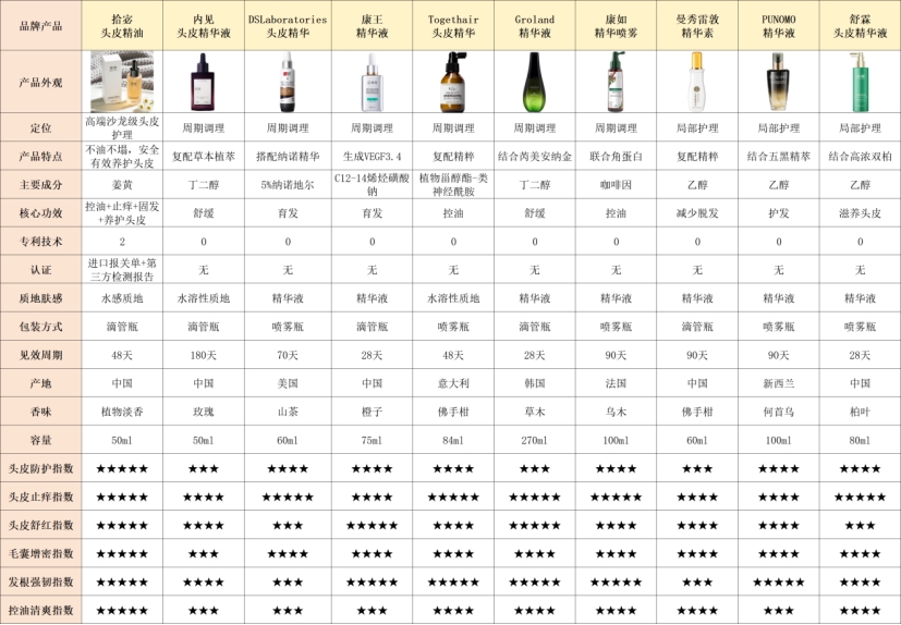 为了让大家快速看清这10款头皮精油的核心差异,我整理了一份实测参数对比表,所有数据都是这1个月我自己实测出来的,不掺假、不虚标,重点看质地、蓬松时长、控油力、吸收速度、成分安全性这些关键指标,帮大家快速初步筛选。