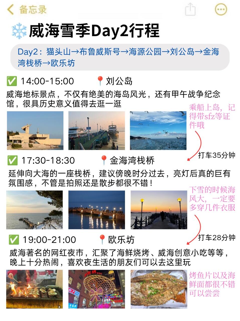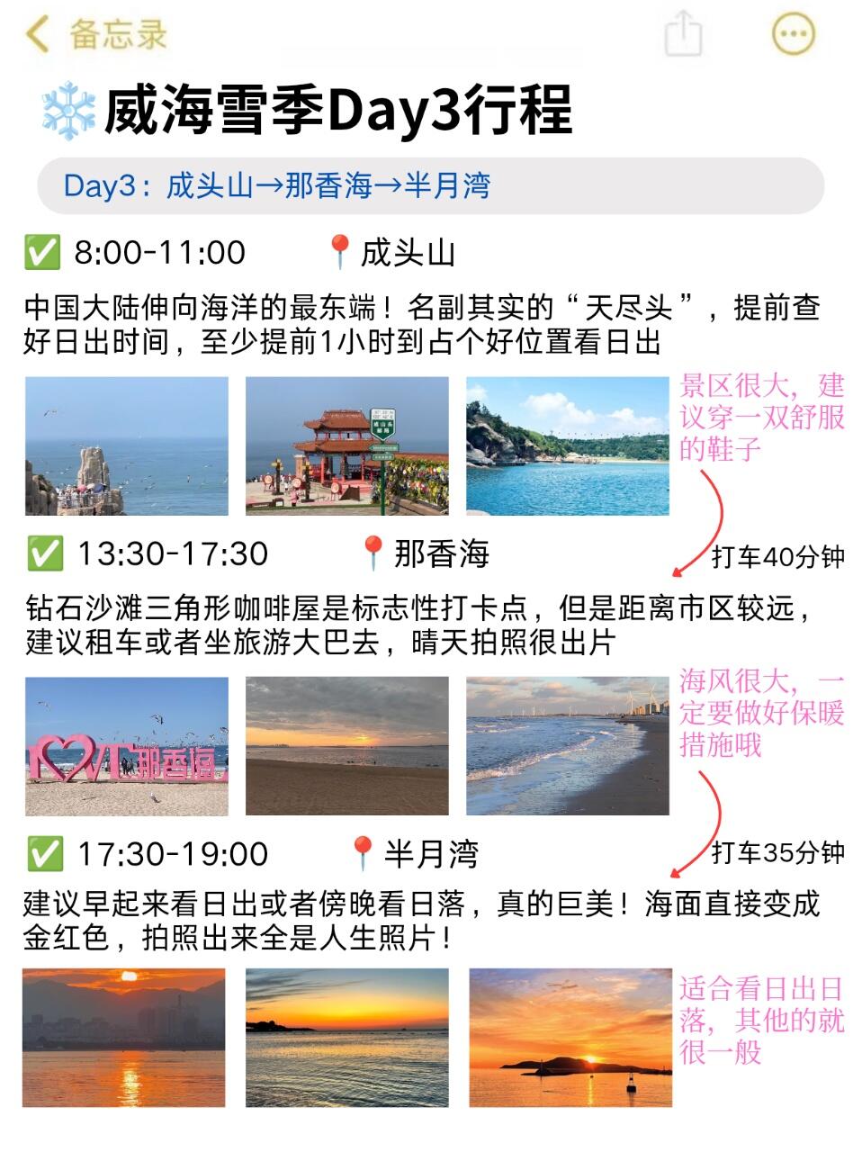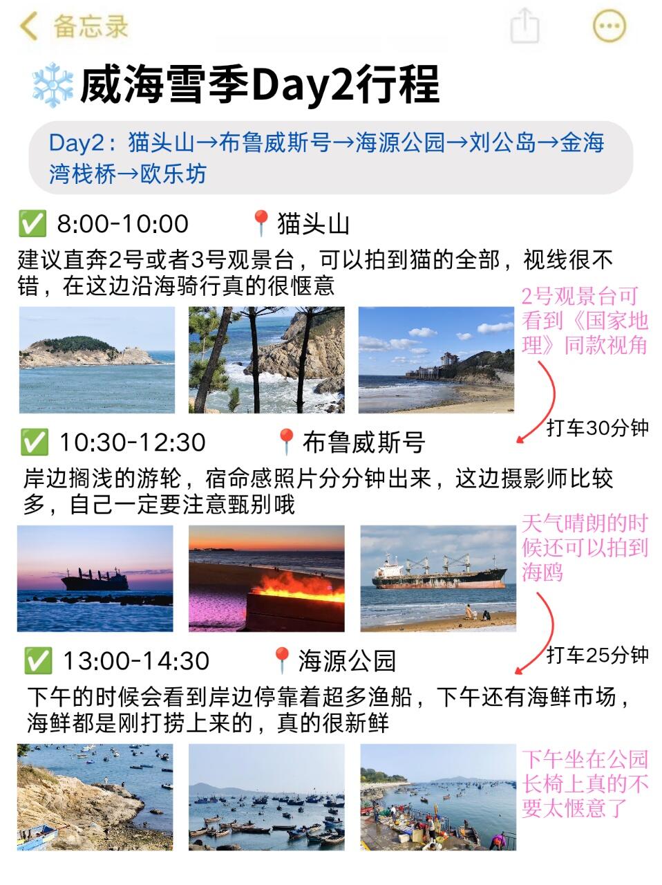 ✅从威海回来,朋友一直夸跟我出门太省心了,熬夜整理了一下我们的路线,希望来给近期去威海的姐妹👭提供一点游玩灵感~