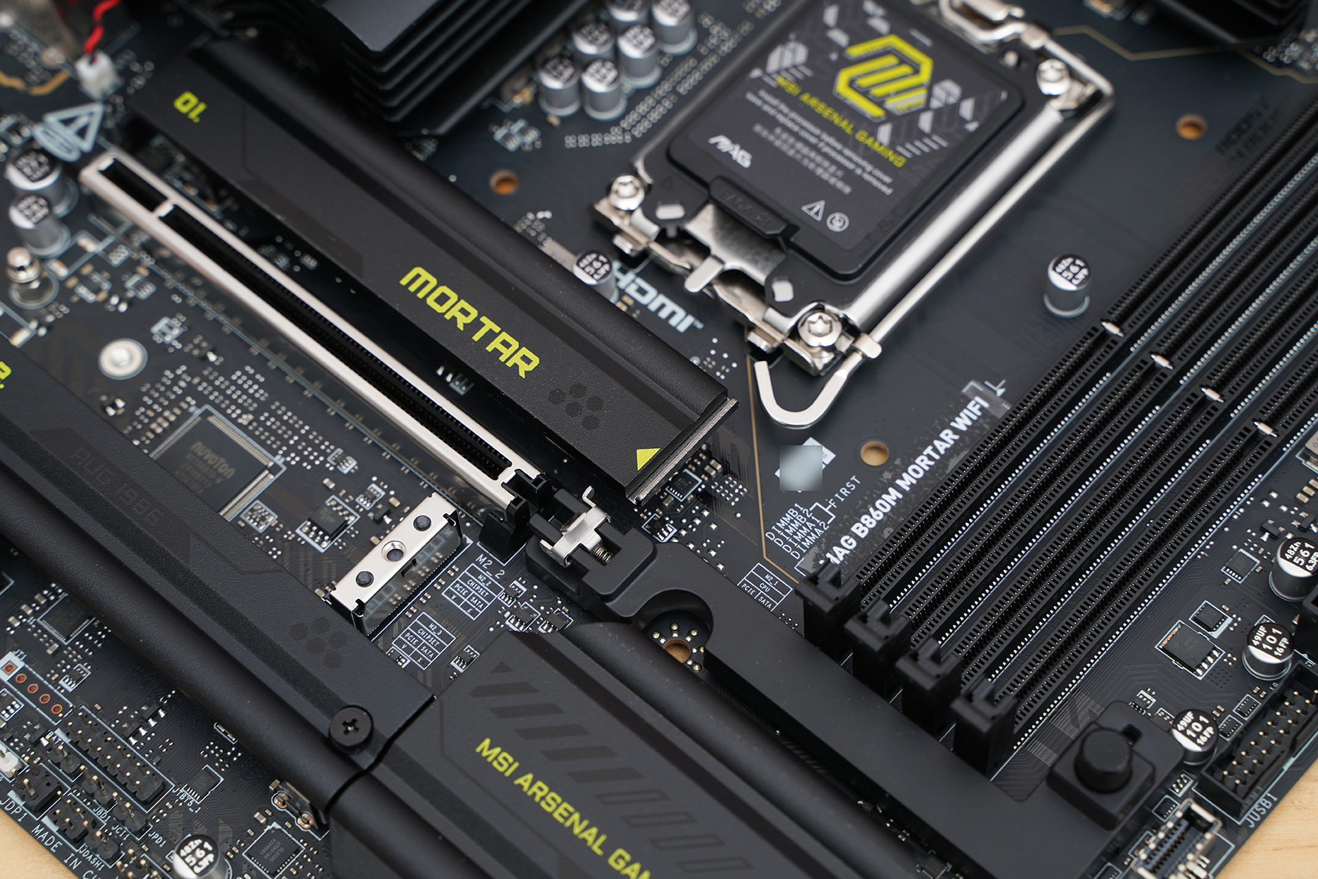 MAG B860M MORTAR WIFI 在造型与散热设计上同样毫不妥协。大面积合金散热装甲覆盖核心供电区域,搭配高效导热垫与优化气流布局,有效保障高频运行时的稳定性。