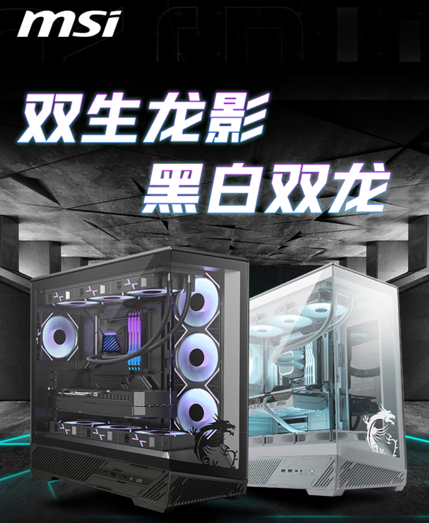 机箱方面推荐微星微星 MAG PANO 131L PZ 黑龙或者白龙,它支持背插主板以及显卡竖装,可以说可玩性很高,机箱侧面与正面也设有通风口,通过气流进行优化,从而降低机箱温度并提高硬件性能。在散热的兼容性上它也可圈可点,无论是360mm水冷还是3枚120mm风扇它都能做到游刃有余。