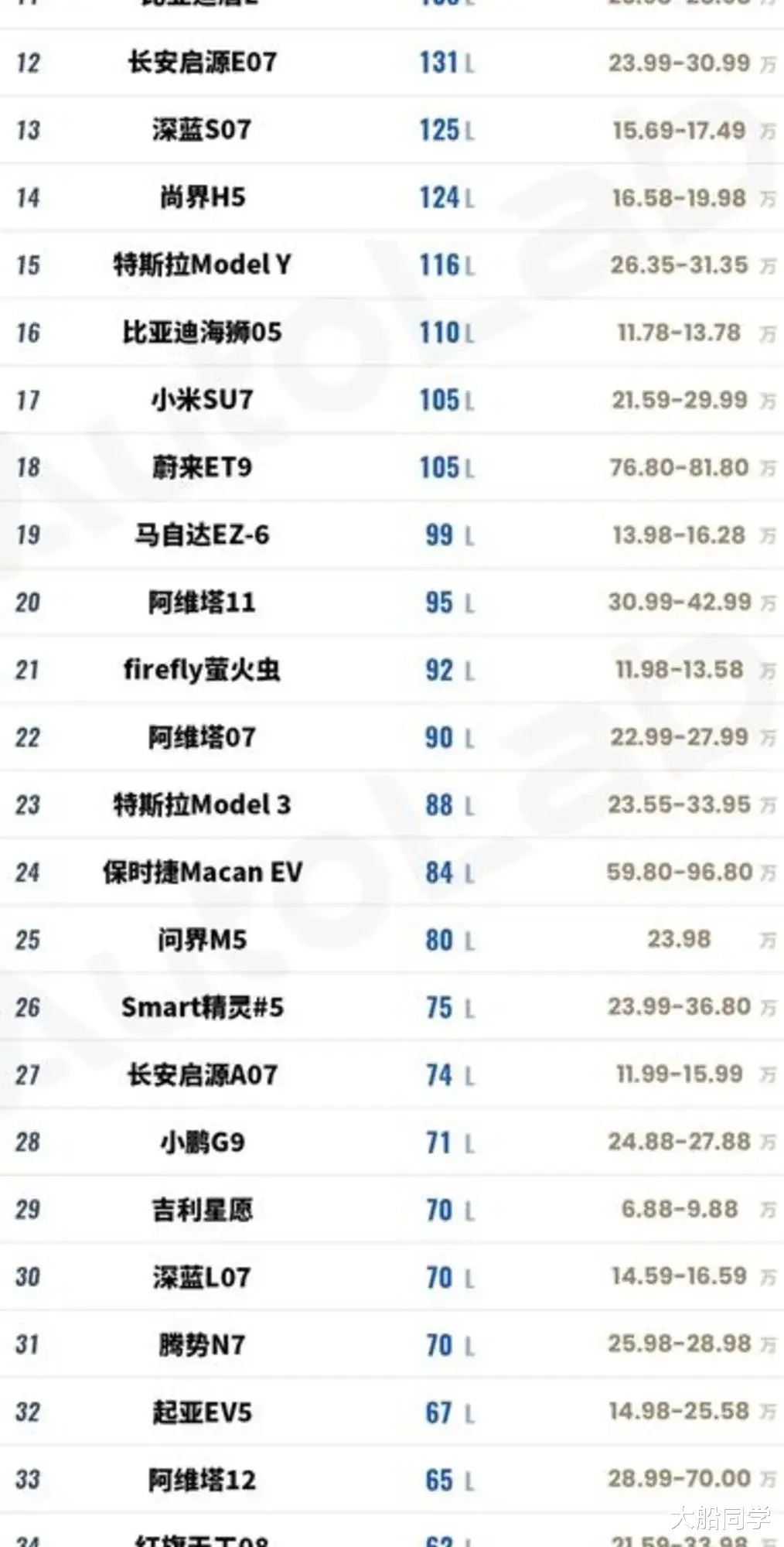 榜单后半.段真.正让人意外的,是吉利星愿和萤火虫这类小型纯.电车,居然也能给到70L,92L的前备厢。这些空间不是设计出来的.,而是一点一点挤出来的——电机与电控高度一体化,管路线束集中布置,甚至连保险丝.盒都做.成了电路板形态来省空间。