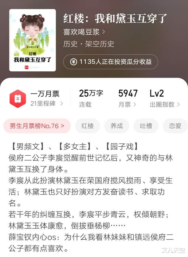 主角过来后,又发现每隔十天会跟林黛玉互换身体,结果就是让林黛玉顶着自己的身份去读书考试参与科举,正好她这方面也确有实力。
