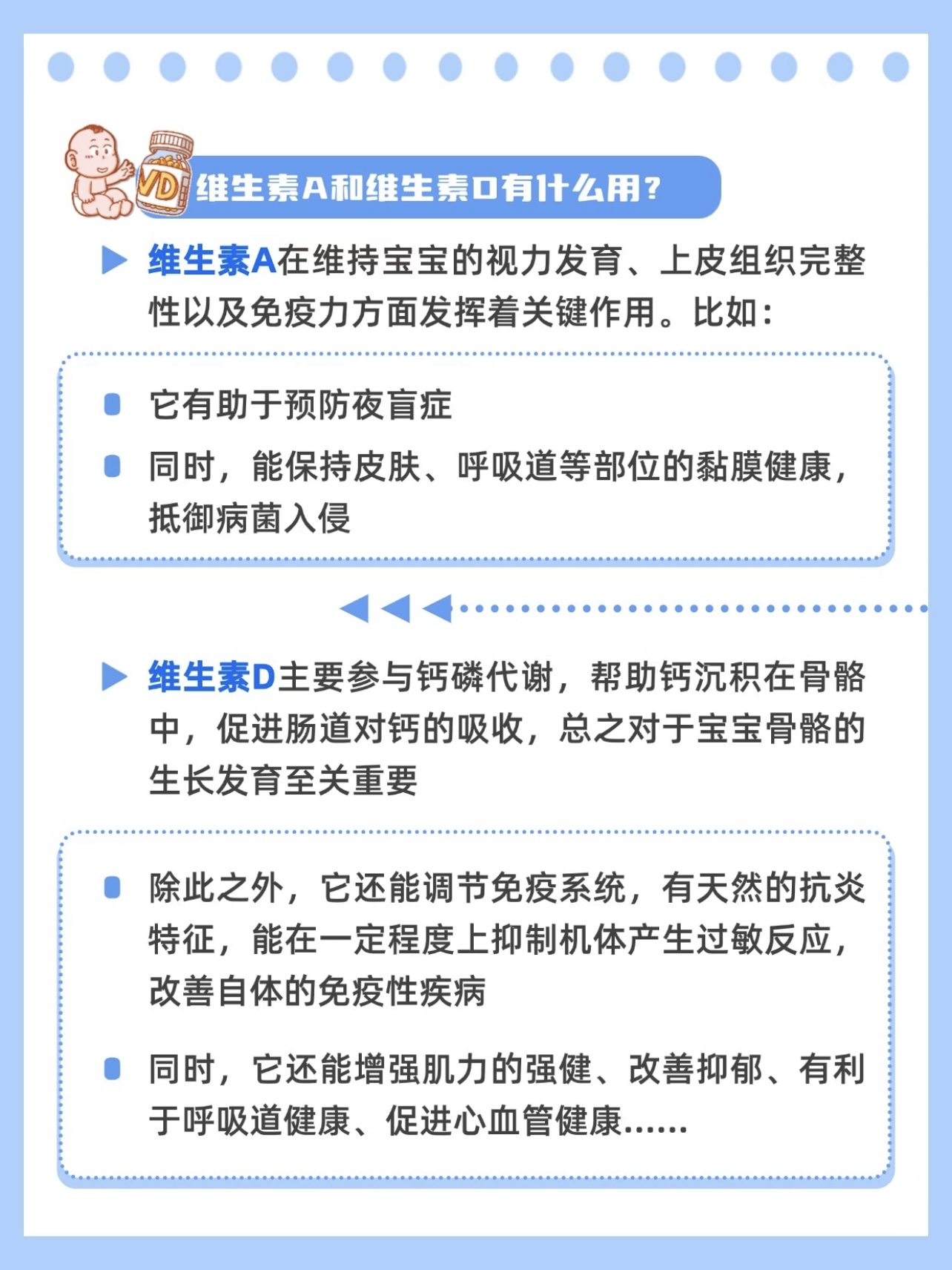 育儿没有完美标准,AD和D3的补充也是。只要抓住每天保证维生素D400IU,维生素A根据饮食调整的核心,偶尔漏吃、剂量小浮动都不用焦虑。毕竟,比起精准投喂,宝宝更需要的是一个放松、快乐的妈妈呀~