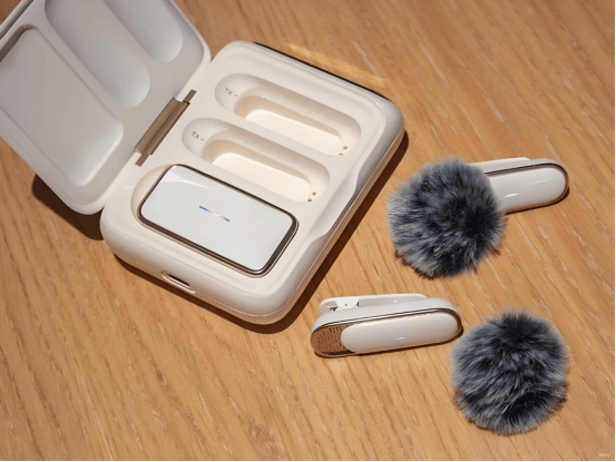 发射器内置电池,接收器可边充边用,配合显示屏实时监控电量。单次录制可支持数小时,结合移动电源可实现全天候使用。虽然缺少充电仓略显不便,但整体轻量化设计和多接口配置弥补了这一不足。