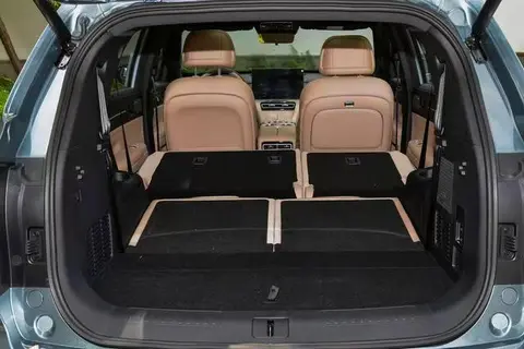 车内挑高超过1.2米,进一步提升了空间的通透感,不会让人有局促的感觉。三排空间虽然比二排略小,但身高170厘米的人坐进去,头部不会顶到车顶,腿部也有一定的活动空间,短途乘坐完全没问题。储物空间方面,车内设计了43处收纳位置,像手机、钥匙、水杯、纸巾等小物件,都能找到合适的地方放。8升容量的扶手箱,能装不少东西,实用性很强。后备箱空间表现也不错,五座版本的容积为732升,其中包含74升的下沉空间,日常购物、放行李箱都没问题。如果需要装大件物品,把后排放倒后,最大空间能扩展到1708升,像1.5米的书架、露营用的帐篷和睡袋等,都能轻松装下。