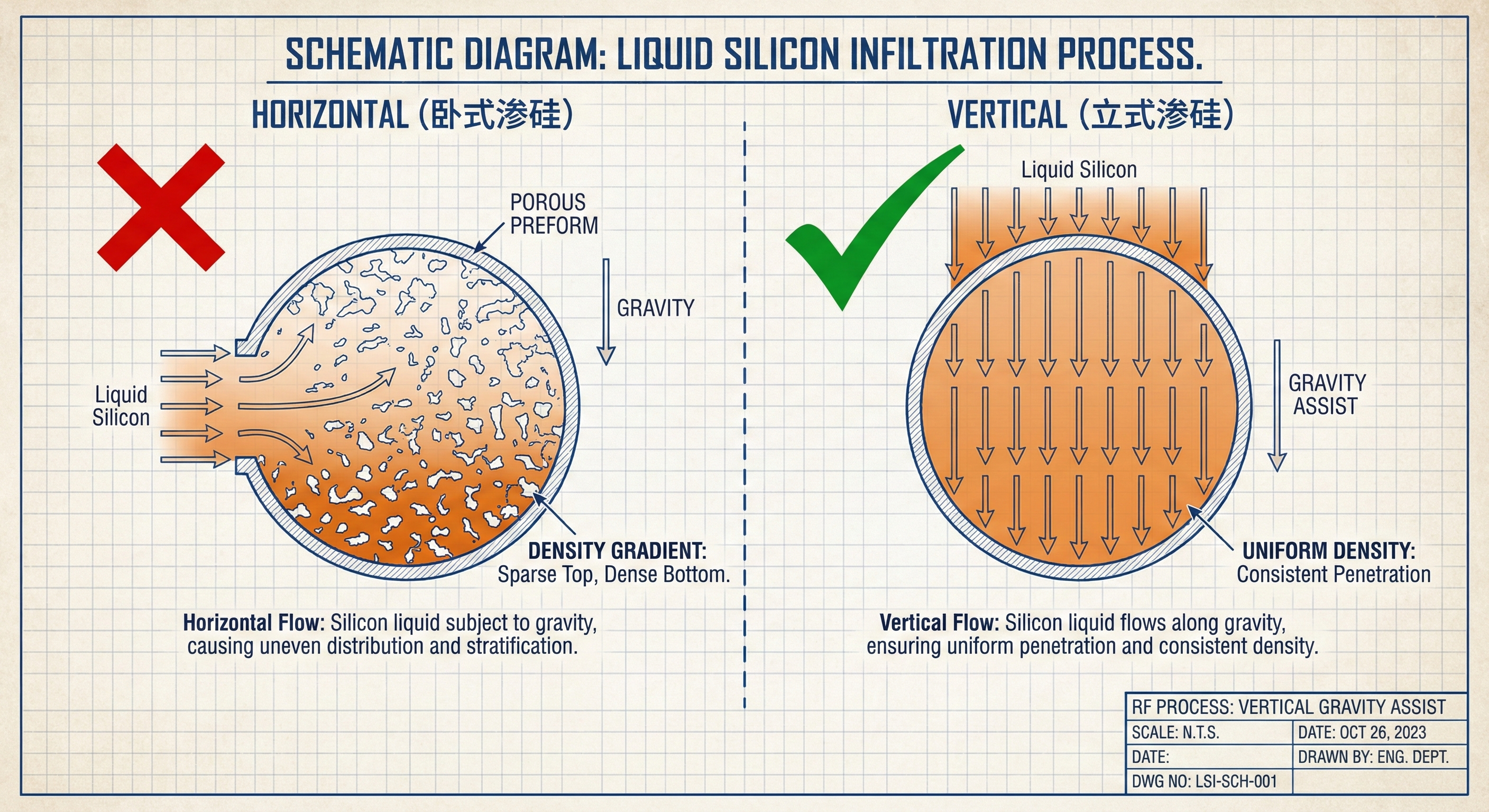 RF 的坚持(立式炉): 为了追求极致的均质性,我们的合作伙伴采用了拥有专利的立式渗硅炉(Vertical Infiltration Furnace)。