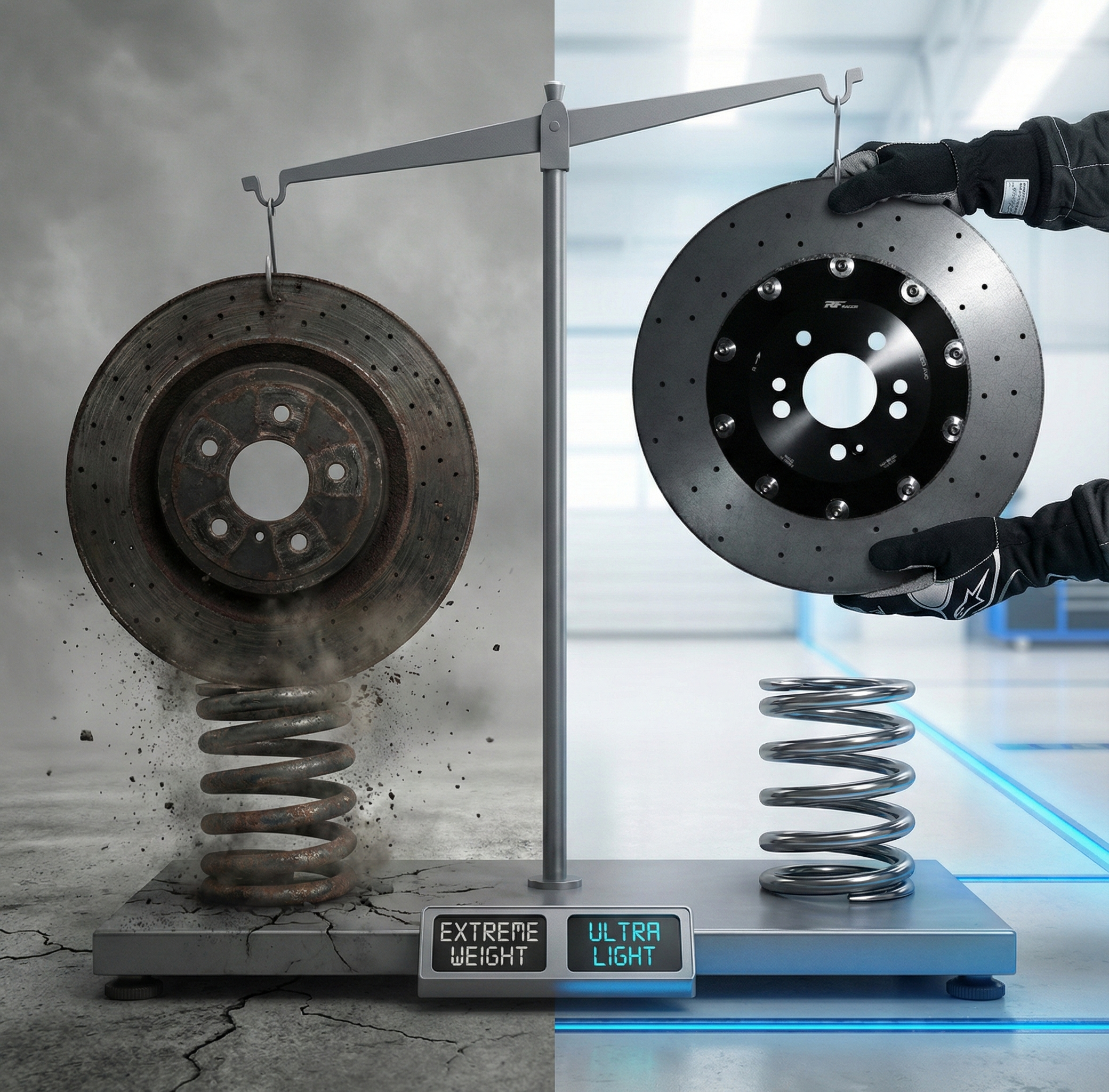 想象一下:你脱掉了沉重的登山靴,换上了一双专业的碳板跑鞋。当你转向时,悬挂不再被沉重的铁盘拖累,回弹响应变得干脆利落;当你加速时,轮上的转动惯量大幅降低,动力释放更加直接。