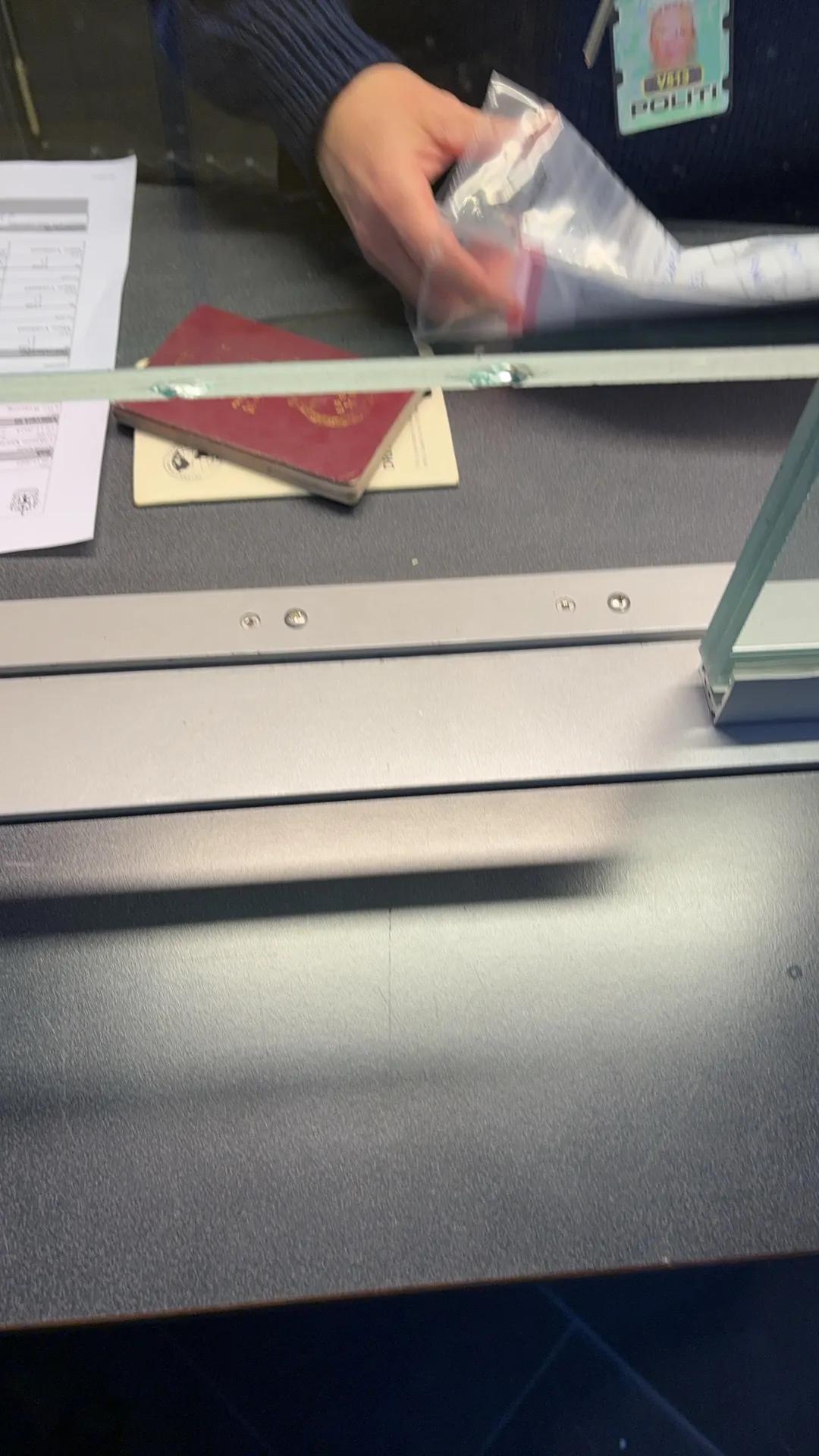 我本以为检查完了会很快放行,结果来了个好像级别更高的警官,让我把身上所有物品都掏出来放进一个小篮子里,然后直接把我关进了小黑屋,并且告诉我不要乱动,他们不进来叫我,我不能出去 我就坐在小黑屋里无聊的等待,这还是我第一次进小黑屋,期间来了一个年轻的警官,说他是移民局警察负责审查我。问我为什么拿的是西班牙签证,我告诉他我十月份去的西班牙,所以拿的西班牙签证。我也告诉了他我几天后就会离开挪威和申根区回国,船票和机票都买好了。他问我带了无人机是准备在挪威飞吗?我说我也不知道飞不飞,只是带着了无人机仅此而已 后来移民警察又回来问我在中国干什么职业,并且让我把公司名字写了下来,他拿去谷歌上查。我也给他解释了我是一名球迷,之前去西班牙主要是为了看足球比赛,而且也在西班牙待了足够多的时间,完全符合申根签证规定。
