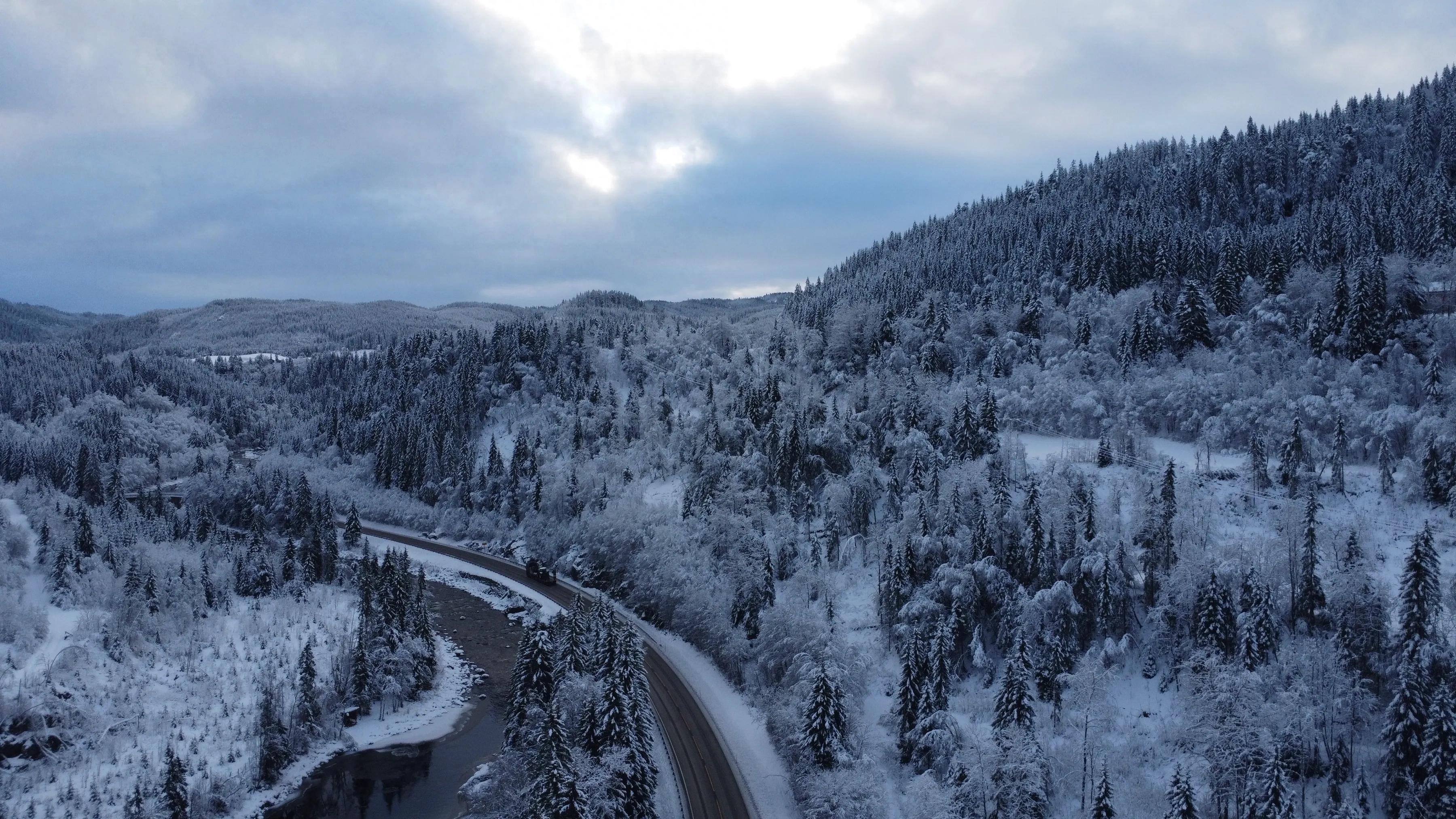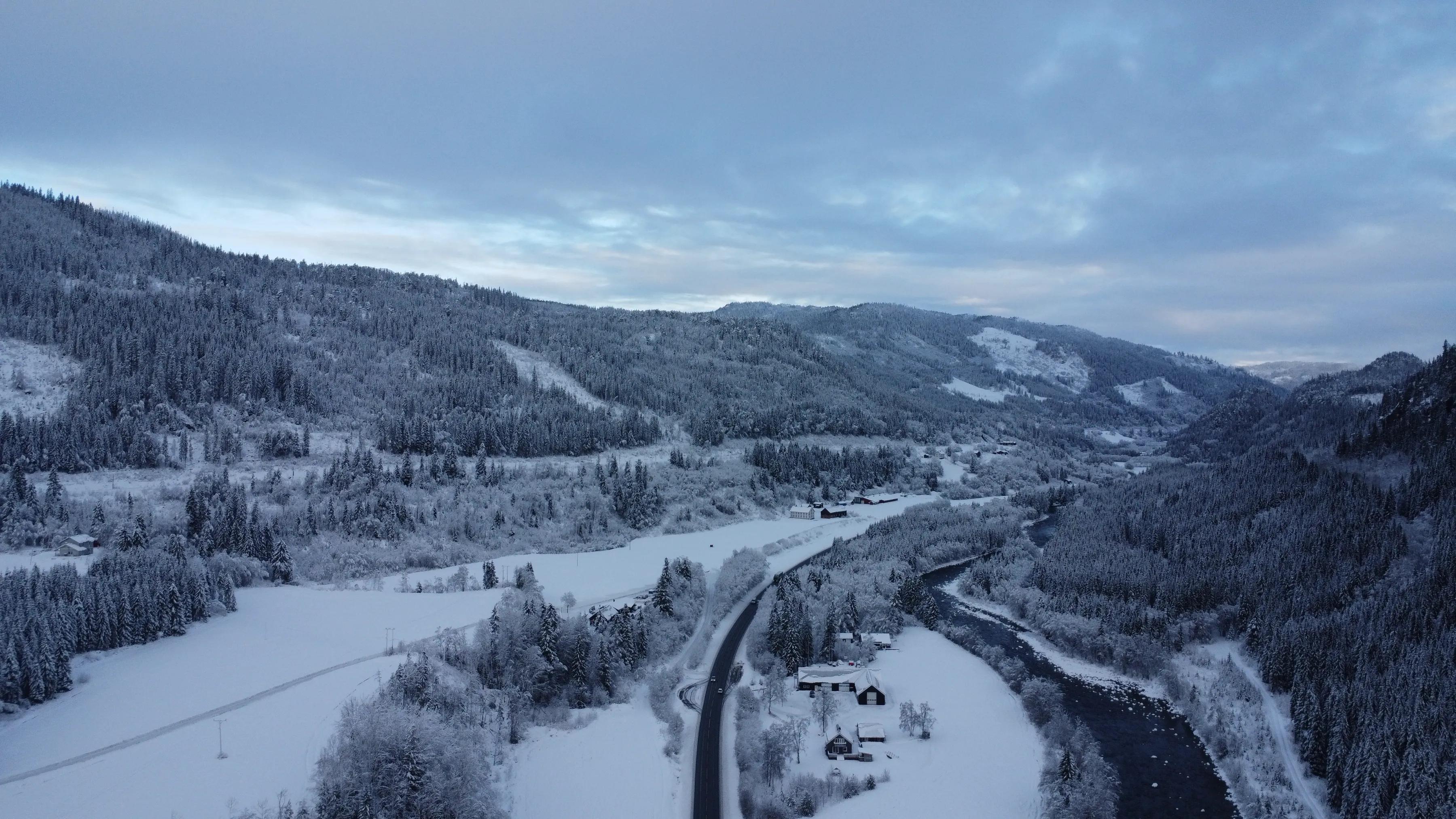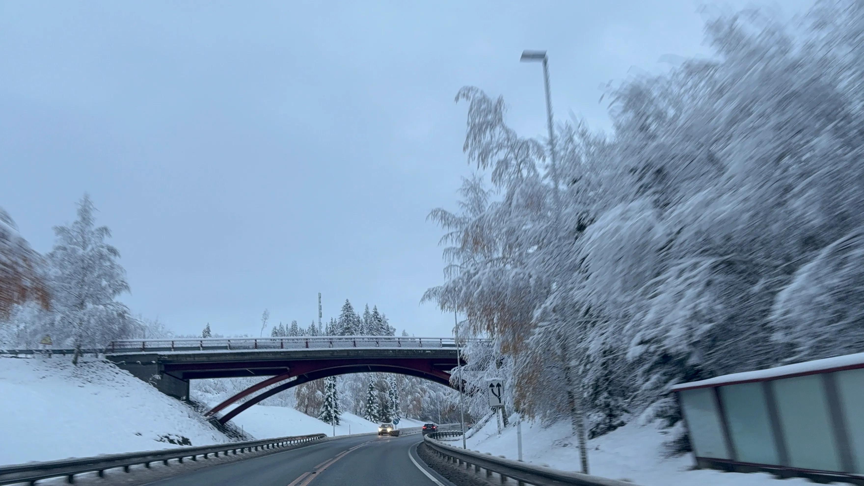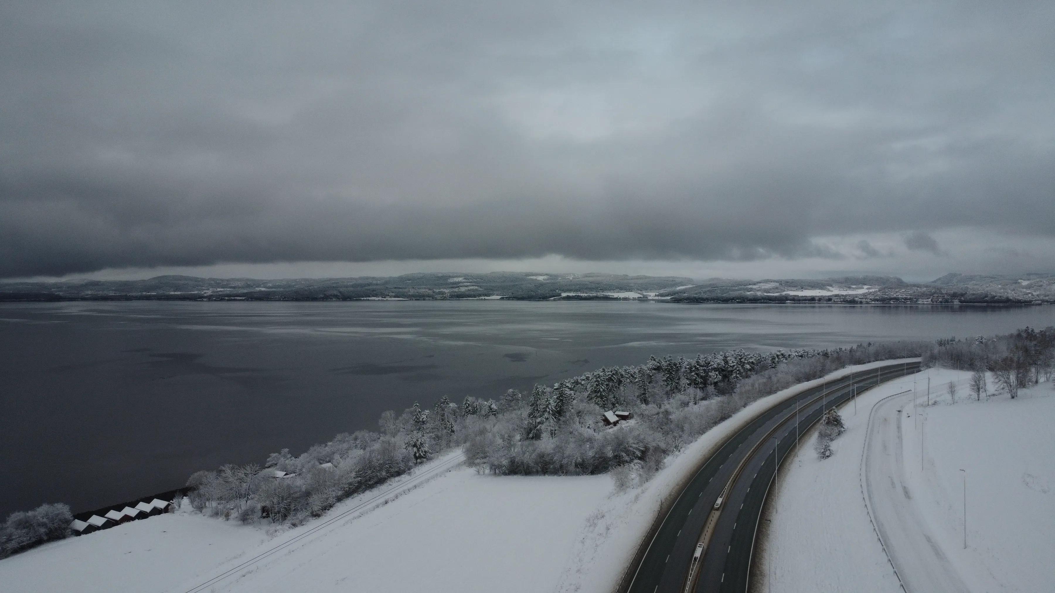 19号早晨,从奥斯陆出发,今天的目的地是北极圈内的城市-博德,整个行程有一千多公里要开十几个小时,我并没有订当天的住宿,想着是走到哪里算哪,或者看到了极光就开始往回走。 中午沿着E6公路中午一点左右到达了挪威中部城市-特隆赫姆,结果发现高速封路了,只能调头回了服务区。挪威这个地方到处都是峡湾,服务区旁边就是一个还算漂亮的峡湾,我吃完午饭把无人机升起来想拍几张照片,结果却惊喜的发现高速路恢复了通行。 我上了高速继续往北开,开到下午两点多,天就开始黑了。