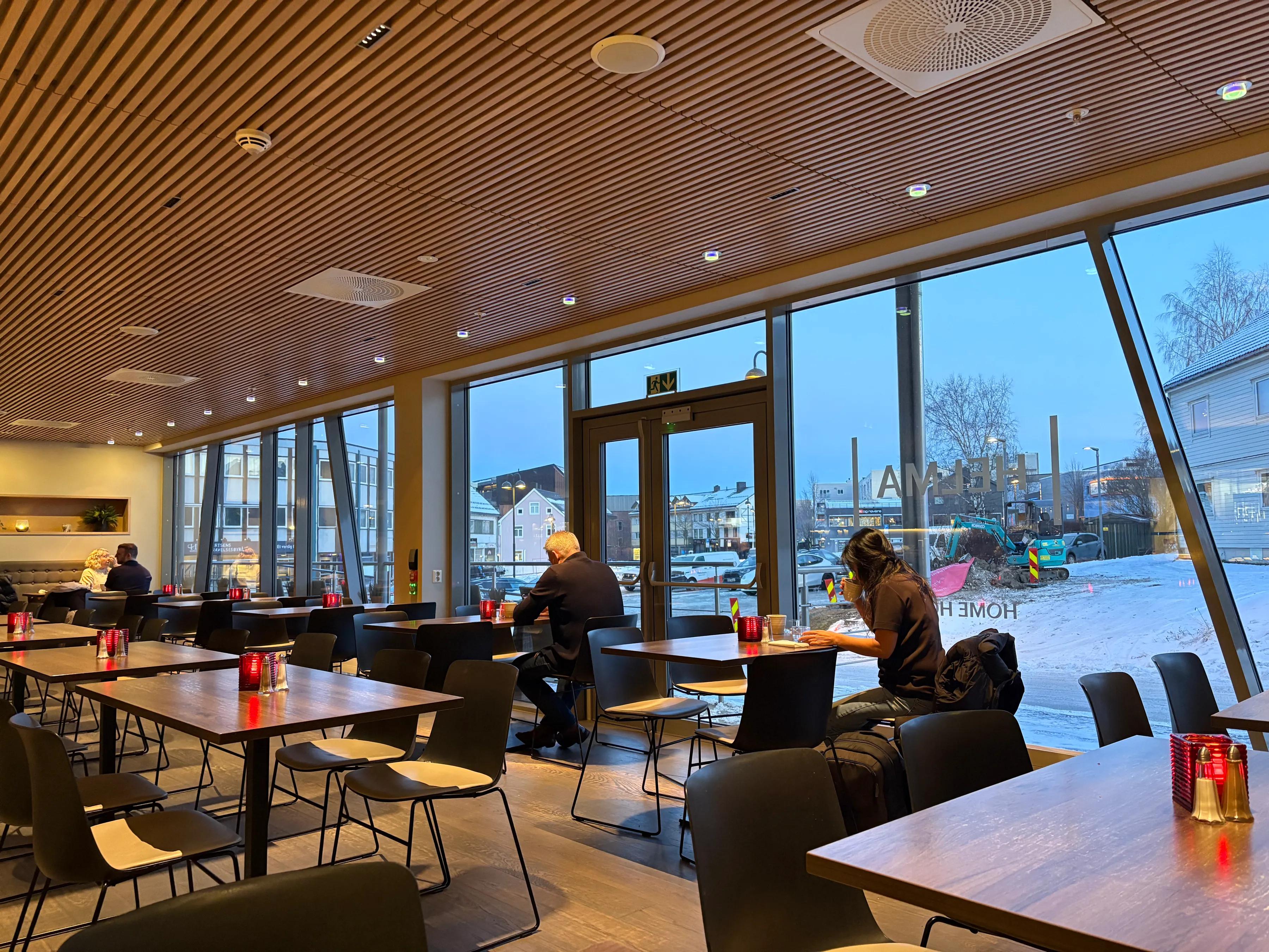 爱人问我要不要联系一下大使馆,我说我这里离着大使馆差不多有一千公里,而且大概率是很小的事情,就别给国家添麻烦了吧。我准备下楼先简单吃个早餐,然后就去警局问个究竟,结果到了楼下一楼餐厅发现早餐异常的丰富,三文鱼和鱼子酱敞开供应,而且味道还不错,我就不争气的多吃了一些。心想着多吃些吧。万一一会儿去了警局被批捕了,就吃不到这些了,从之前前辈们的帖子得知,挪威的监狱每周只有一天会提供刺激味蕾的实物,我万一赶不上,这一顿就当自己刺激自己味蕾了。吃完便背上包,朝警局步行走去。