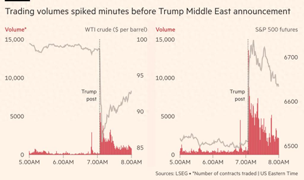 对这次特朗普发布“和谈”信息带来的市场大幅波动,市场的反馈是,这可能存在内幕交易。