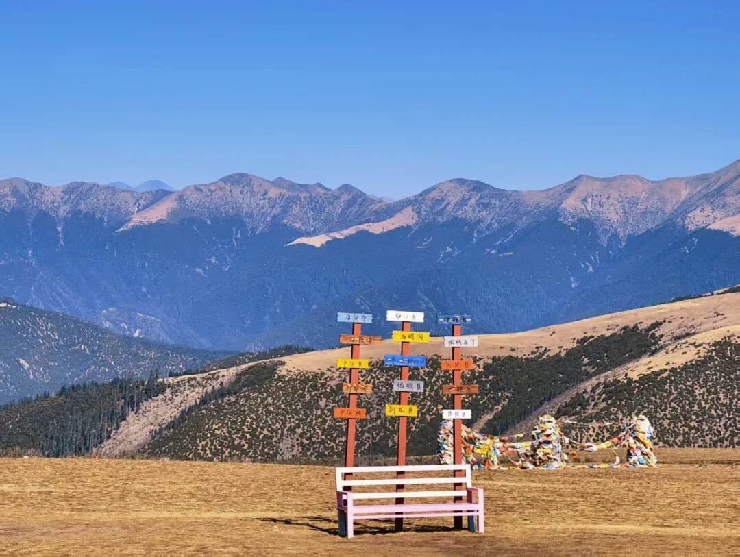 ✅详细攻略:免费观景台,藏地氛围感拉满,大片经幡阵在雪山下迎风飘扬,与远处的雪山、草原相映成画,是拍藏式风情照的绝佳点位。观景台有简易休息区和打卡石碑,可给孩子讲解经幡的藏地寓意(风每吹过一次经幡,就是一次祈福),沉浸式感受藏文化。