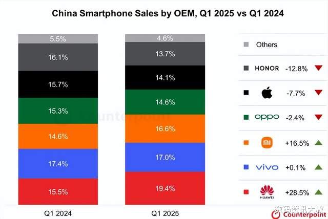 相关数据显示,华为Pura 70系列的出货量已经突破1300万,成为华为旗舰手机的销量担当。知名市场研究机构Counterpoint Research发布的2025年第一季度国内智能手机市场报告也显示,以华为Pura 70系列为代表的旗舰机型助力华为手机销售额同比增长28.5%,达到了自2021年以来的最高市场份额,销量份额为19.4%,位居国内手机市场第一。这表明,依托全产业链技术突破华为已经实现全面回归,全新华为Pura 80系列有望进一步助推华为市场份额。