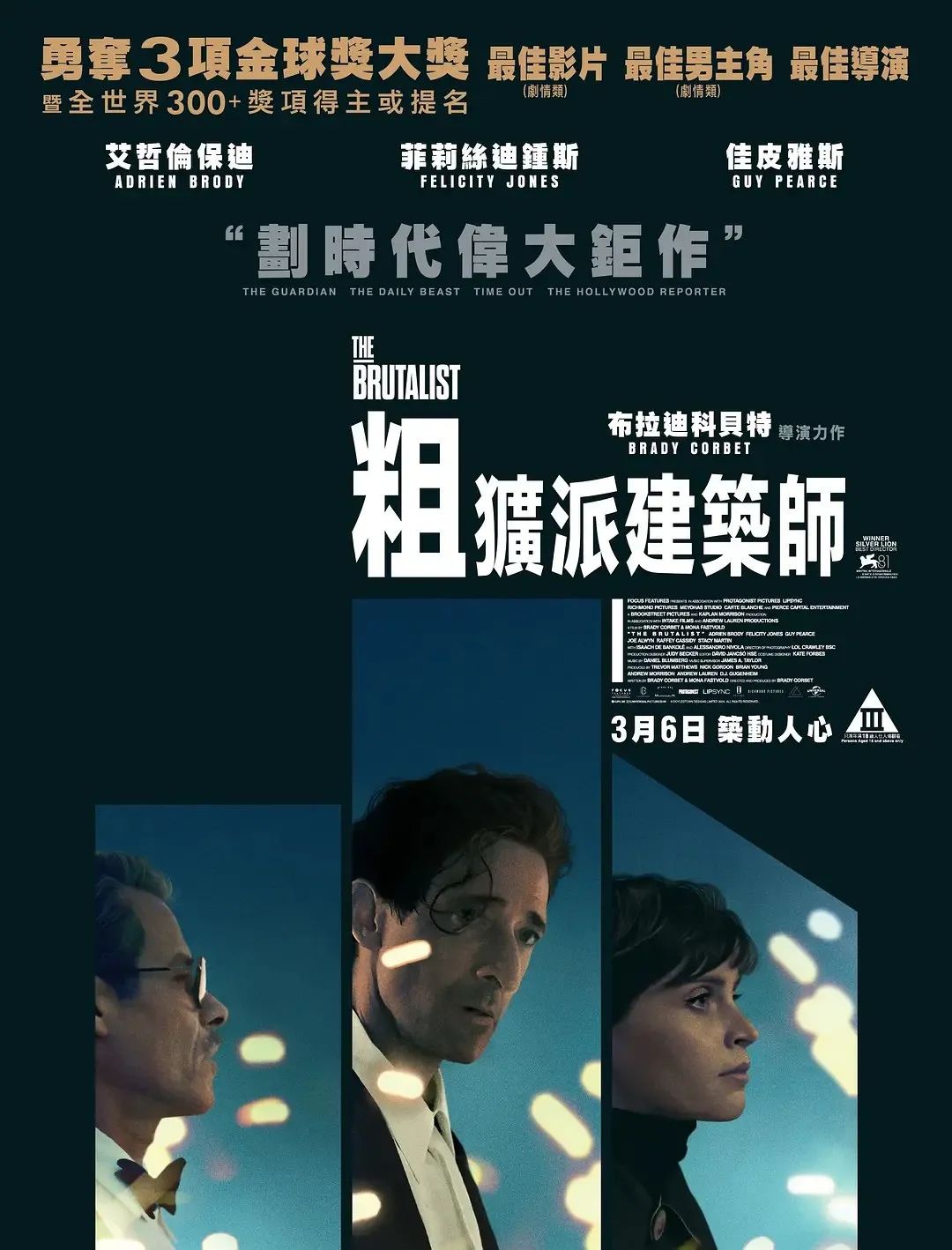 在刚刚落幕的第97届奥斯卡金像奖颁奖典礼上,《粗野派》是最受瞩目的焦点之一。影片收获了十项提名,最终拿到最佳男主角、最佳摄影和最佳配乐三项大奖。