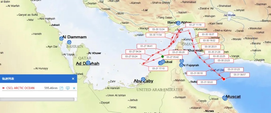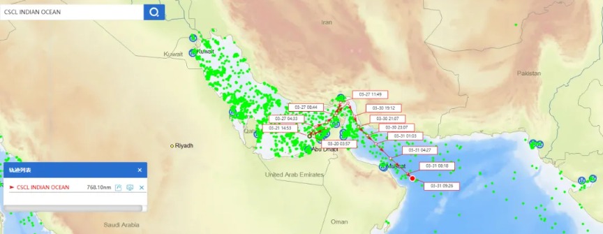 我们的船现在能过了,已在波斯湾滞留一个多月的中国香港籍集装箱船“中海北冰洋”号与“中海印度洋”号,北京时间3月31日上午已顺利通过霍尔木兹海峡。这是自2月底以来,我国大型船只首次通过霍尔木兹海峡: