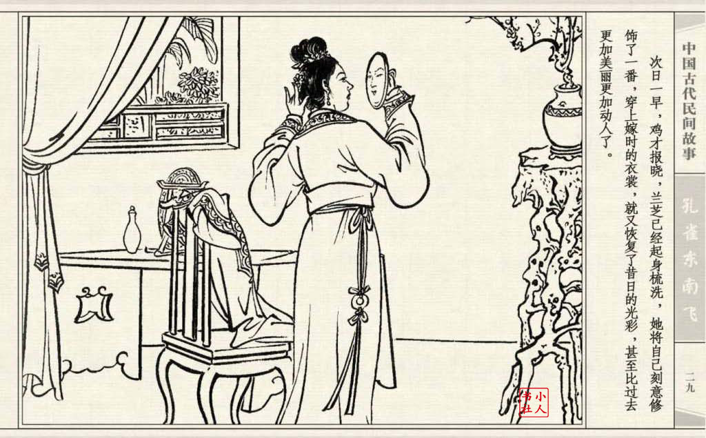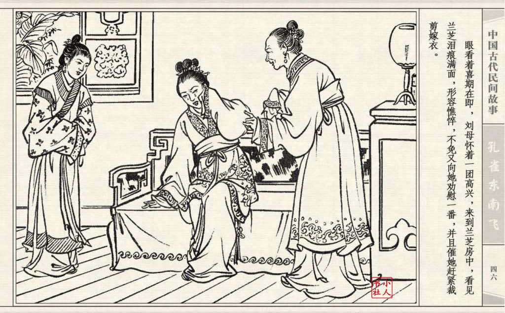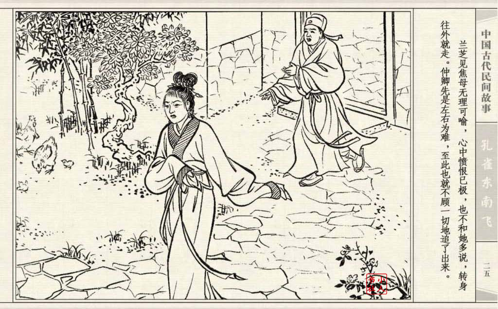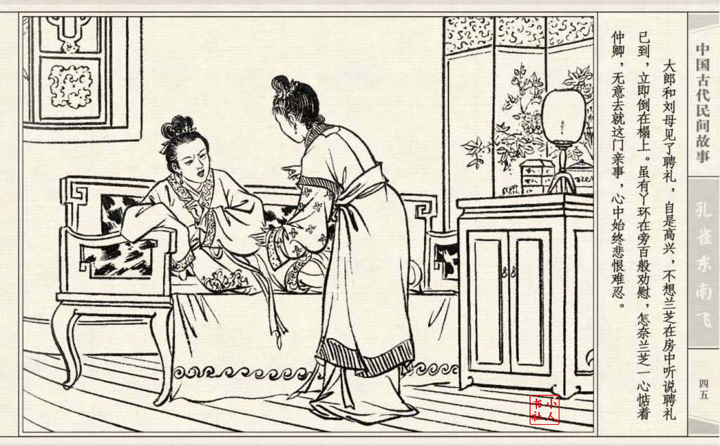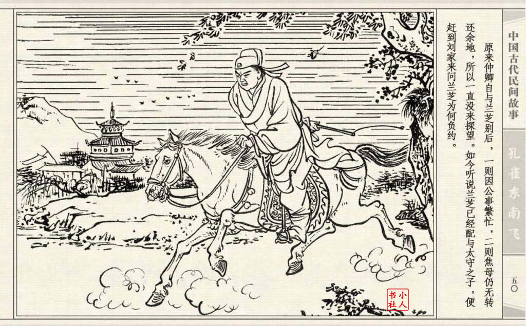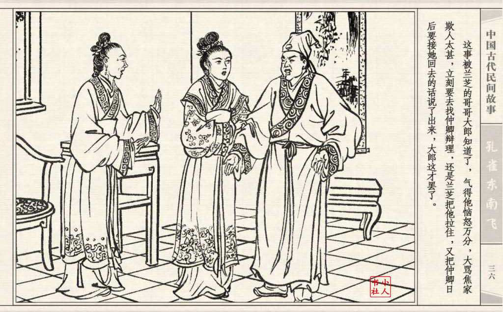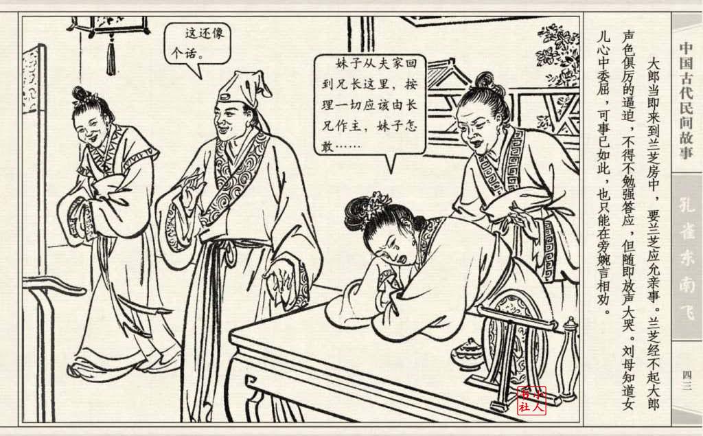 其兄贪图财势,逼她改嫁太守之子。面对封建婚姻的迫害,兰芝在再婚的那夜投水自尽:仲卿也自缢而死。