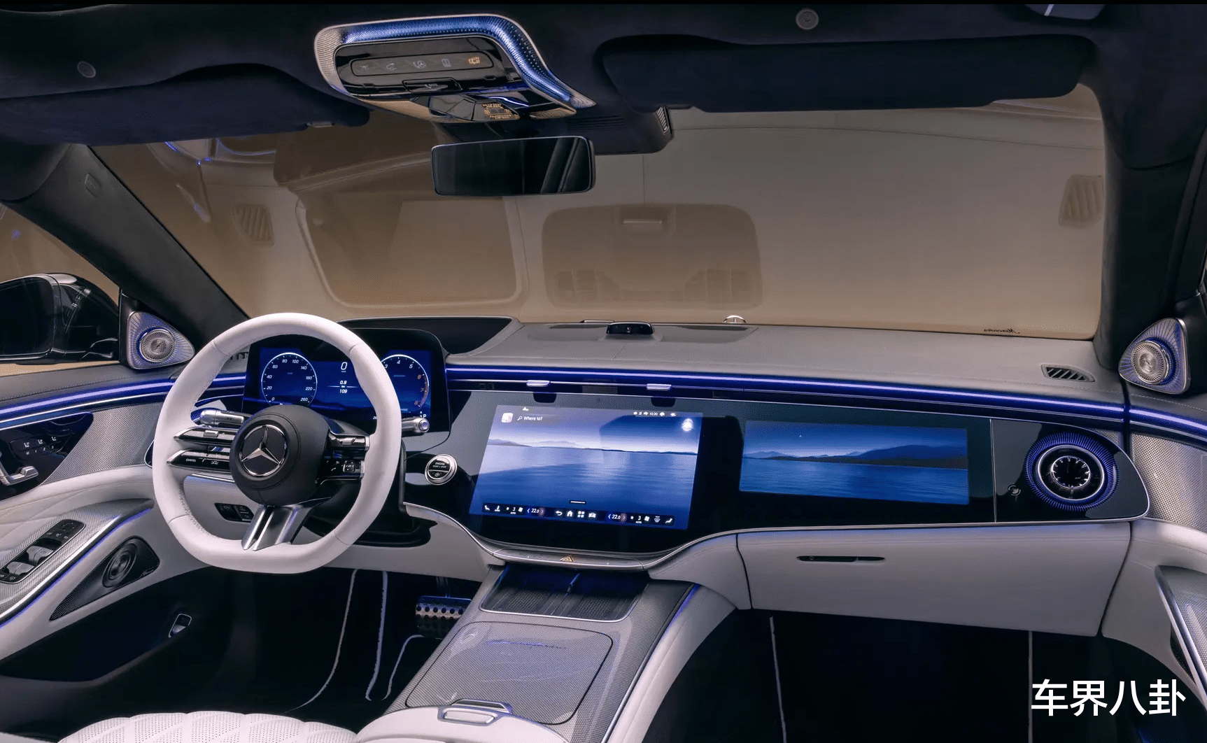 取而代之的是跟E级一样的MBUX超级屏,横向贯穿,副驾也有了屏幕。好看吗?确实科技感强了。
