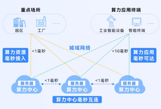 三是推动算力应用毫秒可达,提升应用交互体验。优化算力应用终端到服务器的网络时延,促进算力中心内网络组网方案、网络协议等技术创新,优化人工智能训练推理的通信效能,推动算力中心全光交换(OCS)、光电融合组网等技术应用部署,提升算力中心网络性能,到2027年推动算力应用终端到算力中心服务器的单向网络时延小于10毫秒。丰富算网融合业务,聚焦制造、金融、交通、医疗、教育、文娱等重点行业,鼓励基础电信企业结合差异化用算需求,推出定制化算网融合业务套餐,提供弹性、普惠的算网服务能力,支撑工业质检、辅助诊断等典型算力应用交互体验提升,促进人工智能高水平赋能新型工业化。