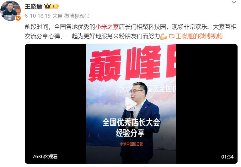 通过王晓雁的微博动态也可以看出,目前他的日常依旧围绕着小米之家等业务。