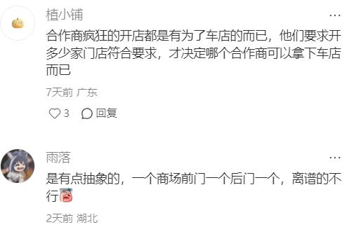 有网友指出合作商不断开店的原因是为了开设车店,此前也曾有传闻想要售卖小米汽车,前提是要开设多家小米之家,至于具体的数量和营业额要求,目前尚未有明确的说法。