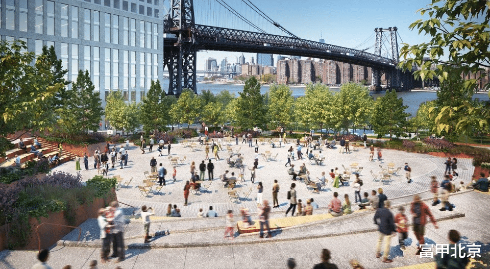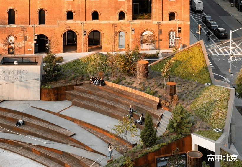 广场的材料设计呼应了Domino公园的风格,同时也融入了适应这一城市空间特性的元素。广场与The Refinery建筑紧密相连,提供一个公共空间,设想中的底层公共用途得以扩展至广场。由于广场位于Kent Avenue,进一步将Domino公园扩展至邻里区域,邀请更多人前来享受公园。
