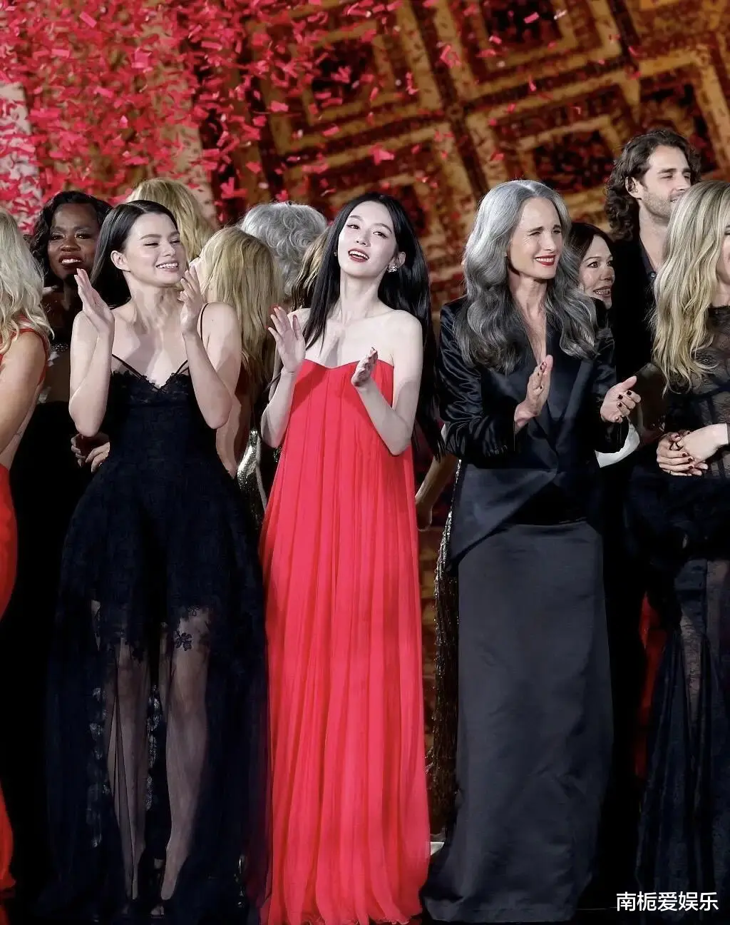 周也与国际超模肯豆后台同框合影流出,两人风格迥异却气场相融,被赞“东西方时尚的完美对话”。相关话题阅读量短时间内破亿,网友集体沸腾:“这才是文化输出,美得高级又骄傲!”“周也的红裙让我看到中国红的千种可能,不是艳俗,是力量与诗意的结合。”外媒亦不吝赞美,称她“宛如从千年水墨画中走出的仙子,却带着21世纪的锋芒”,更有评论直言她“重新定义了东方女神的现代风采”。