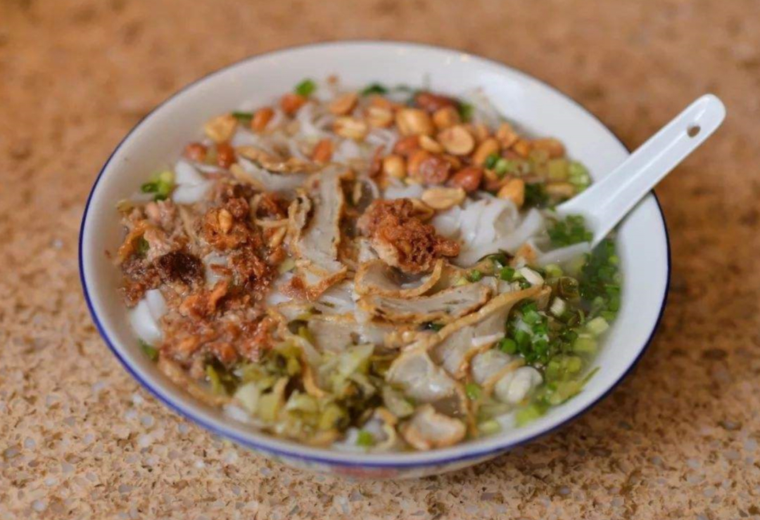 三吃粉。粉要连汤带料一同入口,让鱼饼的弹、炸鱼的酥、花生的脆、豆芽的爽、粉的滑在口中奏出层次分明的乐章。最后碗底只剩几点葱花,连汤都喝尽,才是对制粉人最大的敬意。