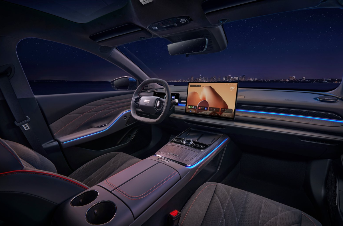 在动力与能耗上,新车搭载雷神EM-i AI电混系统(1.5L Evo+ E-DHT)凭借热效率高达47.26%的全球量产最高发动机,及星睿AI云动力2.0的智慧能量管理,百公里馈电油耗低至3.32L(CLTC),为5米级轿车最低——其满油满电综合续航高达1700km+,尽可让用户自在远行。