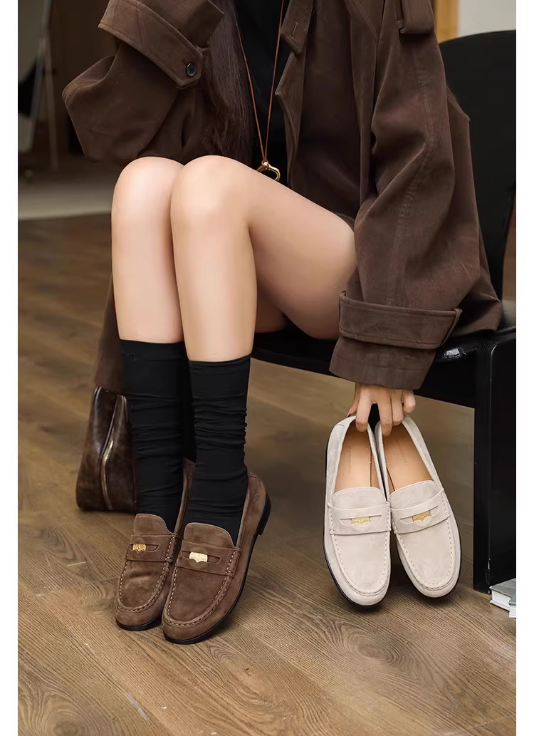 毕竟同样是靴子,优质头层皮的温润光泽能和羊绒大衣的质感完美呼应,而廉价 PU 皮的干涩感只会拉低整体格调。即便是乐福鞋这类经典款,鞋型的区别也会让整体格调大不相同。