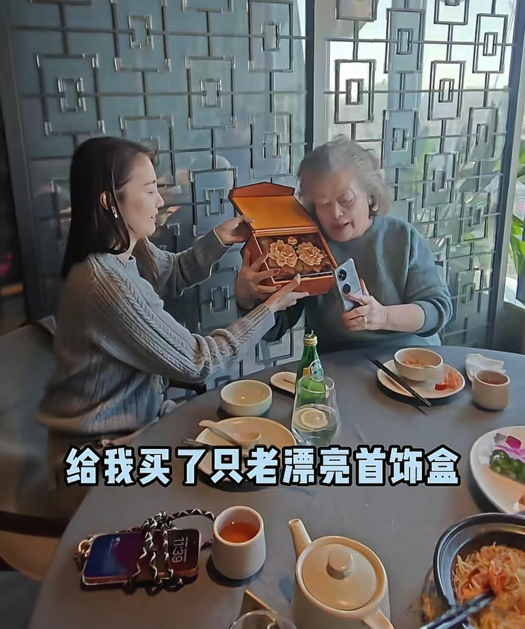 吃饭时,婆婆接到老姐妹电话,她又忍不住在电话里向姐妹炫耀儿媳妇买的礼物,看来这两个礼物章龄之又是送到婆婆心坎里了。