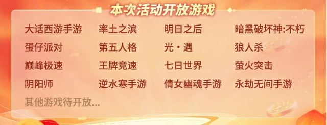 关于上面提到的指定游戏在这里向大家呈上名单,各位可以看看自己常玩的游戏是否在列哦~