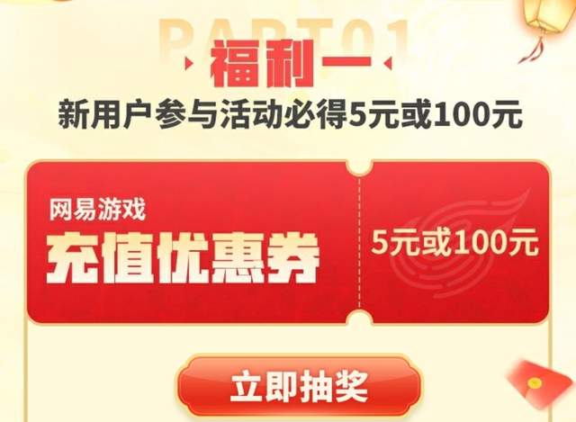 网易游戏新春开运补贴福利活动现已上线一个月有余,本着福利搬运工的理念,在此跟大家分享一波。首先是新用户注册福利,我愿称之为全民普惠,只需要咱们是首次注册指定游戏的网易官服,在活动页面下载并登录,即可100%领取5r或100r充值优惠券!够有诚意了吧~