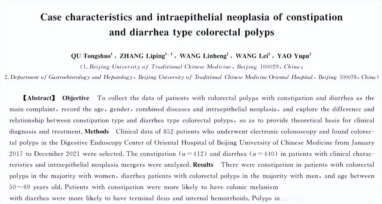 2、西部医学.便秘型与腹泻型结直肠息肉的临床特点及上皮内瘤变. 2023 ,35 (11)