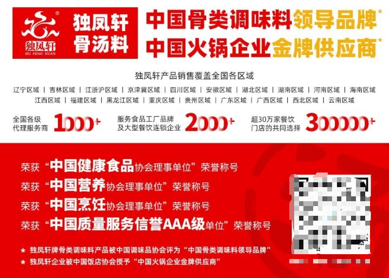 更重要的是推广难度低,开袋兑水就能用,不需要专业厨师技术,门店后厨人员都能快速上手,客户接受度高,无需上门培训、长时间试熬,推广成本低。独凤轩还会给经销商提供全套配套支持:样品、试吃装、宣传册、价目表、对比测试方案全部免费提供,还有谈店话术、拓客思路、样板店案例,经销商可直接参考推广。