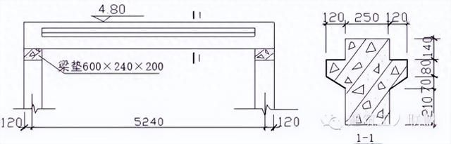 [例]某现浇花篮梁,梁端有现浇梁垫,尺寸如图所示。木模板,木支撑,计算梁模板、支撑工程量,确定定额项目。